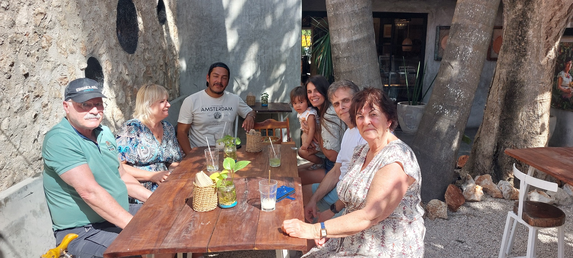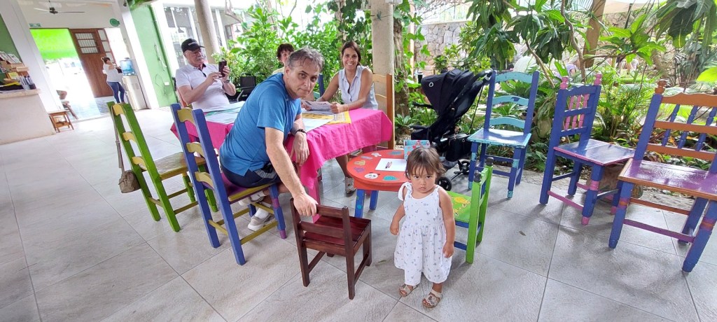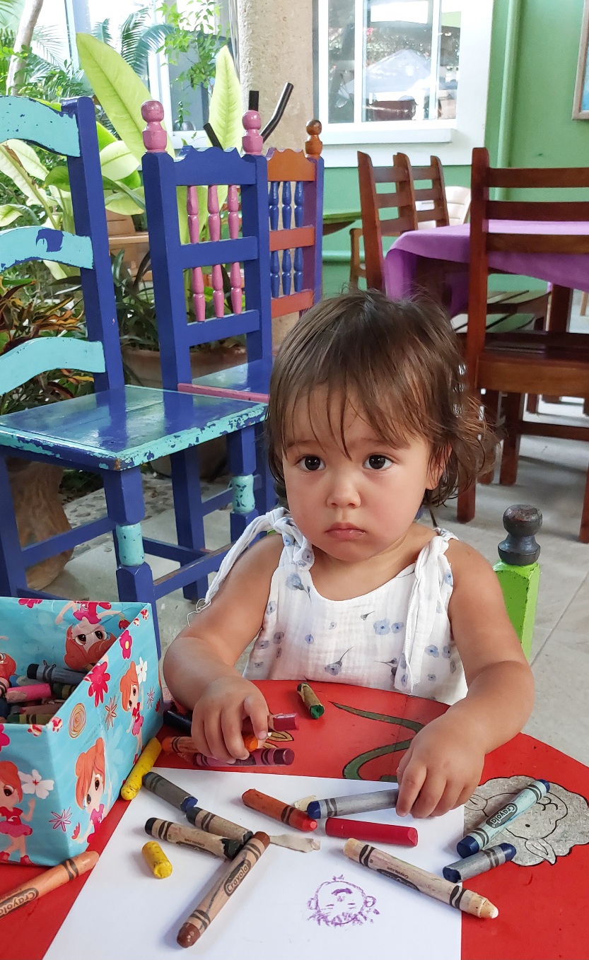 Restaurant Yerbabuena del Sisal was erg kind vriendelijk en schoof gelijk een klein tafeltje erbij zodat Lila kon kleuren.