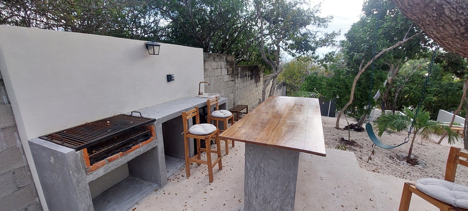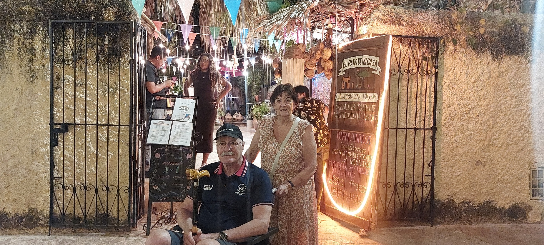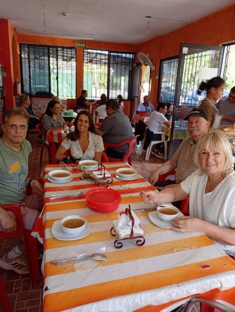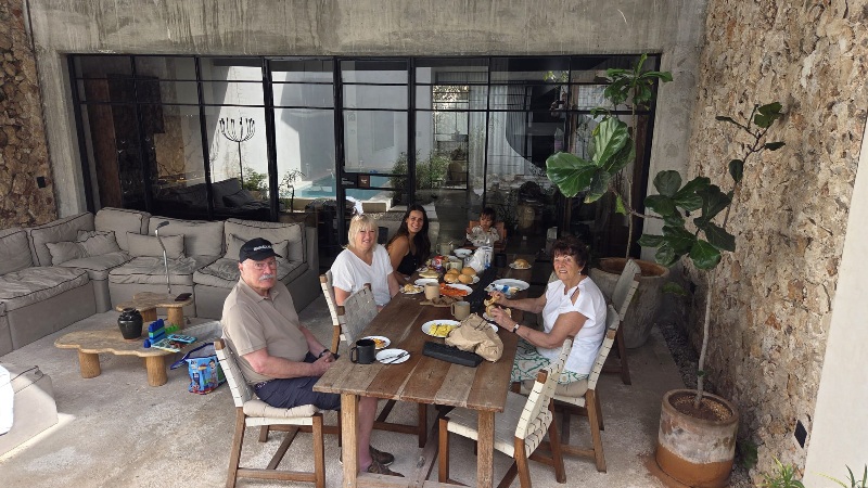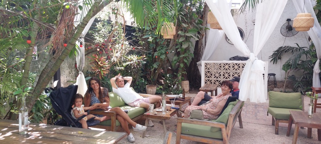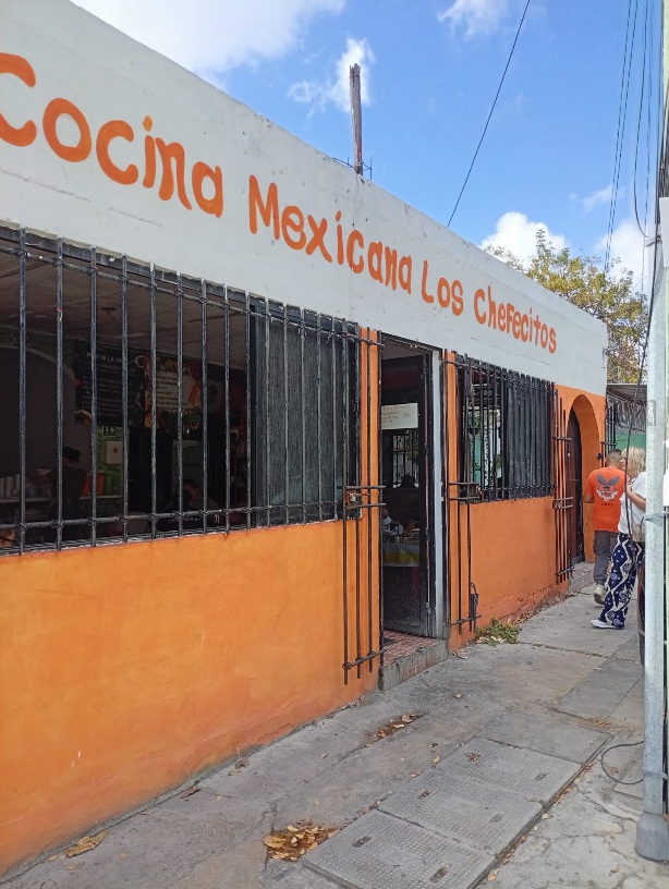 Eenmaal terug in het stadje Valladodid gingen we wat drinken in één van die gezellige binnen tuintjes. Mijn moeder heeft haar favoriete drankje ontdekt, de horchata, een drankje gemaakt van rijstewater met suiker en kaneel. Totaal anders dan de Spaanse variant. We besloten gewoon thuis te gaan lunchen. Ik haalde bij een stalletje op straat verse mango stukjes, bij de bakker verse broodjes en mijn moeder bakte een eitje voor ons en Lesley maakte guacamole.