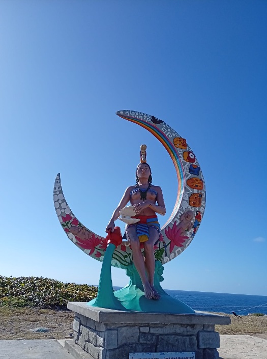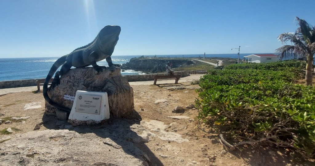 Je hebt hier op dit plekje een panoramisch uitzicht over de Caribische ruige zee en je ziet veel leguanen lopen door het park, dit mooie beestje heeft zelfs een eigen standbeeld gekregen.