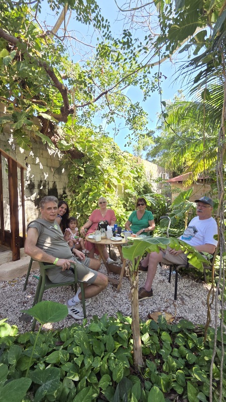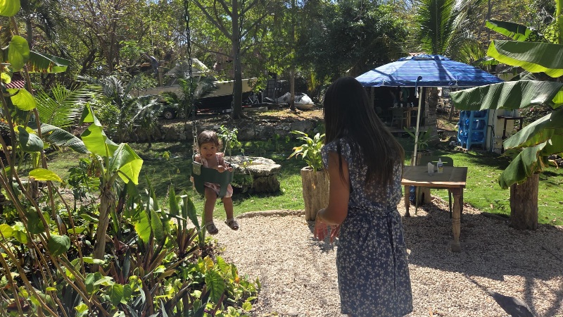 Heerlijk in de schaduw onder een grote boom een kop koffie of thee drinken samen met een plakje bananencake. Lila gaat altijd lekker schommelen hier.