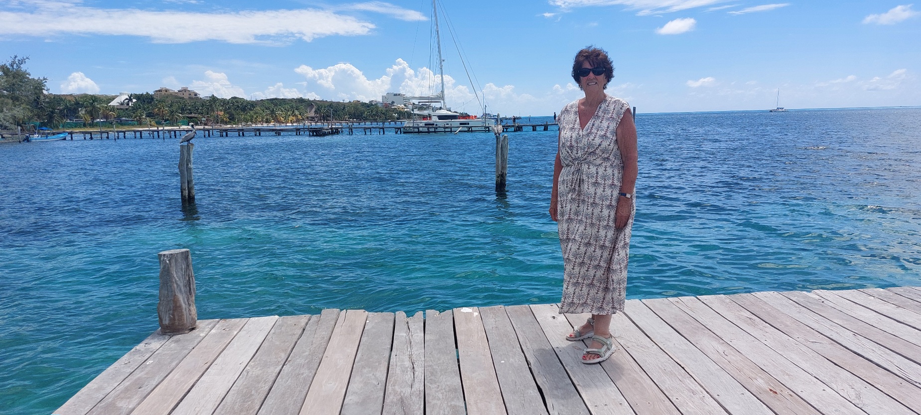 Samen met mijn moeder even de pier opgelopen. Zo kun je goed de kustlijn zien. Naast de pelikaan een plaatje geschoten van mijn lieve moeder.