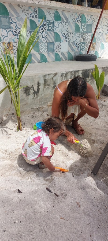 We gingen lunchen met elkaar bij restaurant Tikinxic aan het strand zo kon Lila ook lekker spelen in het zand.