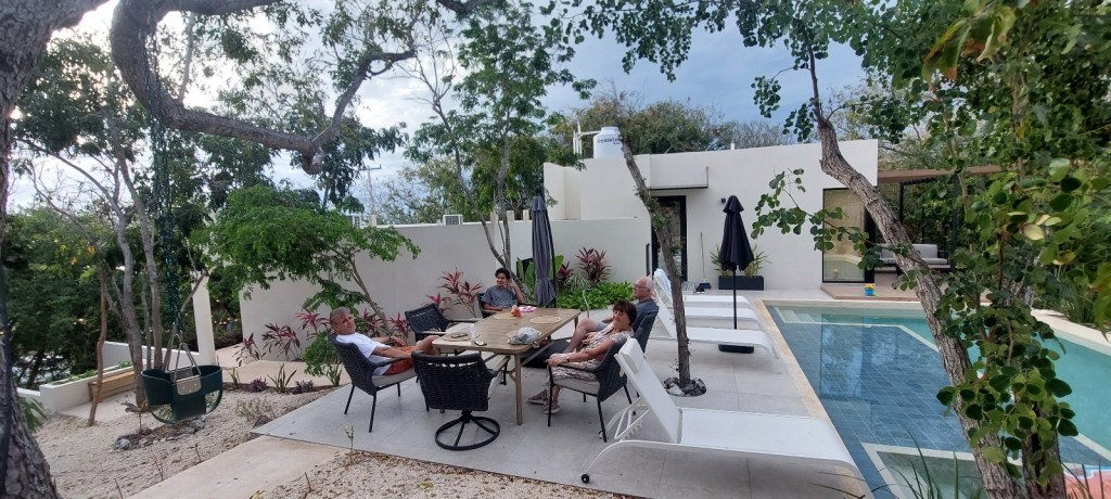 Nog even gezellig ontbijten bij onze mooie villa in Valladolid en toen vertrokken we weer naar Cancun.