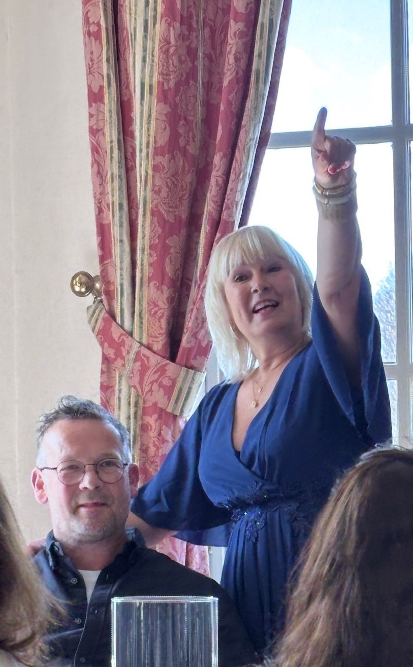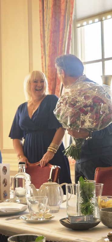 Lesley verwelkomde iedereen en ik kreeg een prachtige bos rozen van hem, 60 stuks!