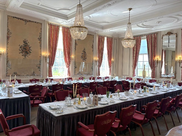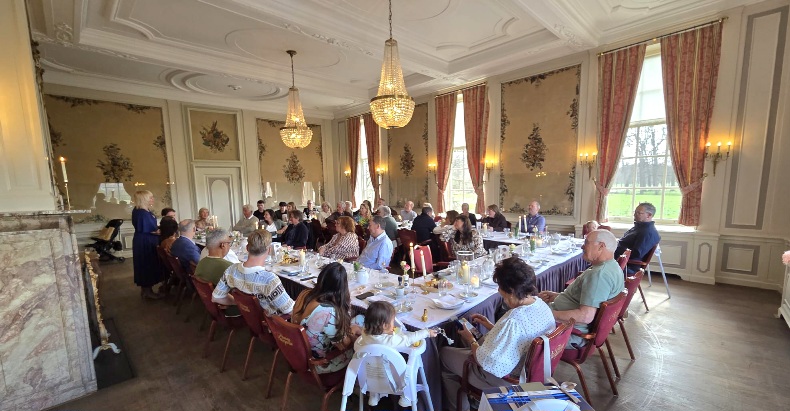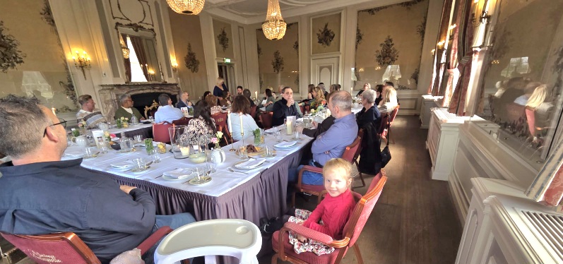 Om half 2 gingen de deuren open van de feestzaal waar een prachtige tafel gedekt stond. Iedereen was vrij om te gaan zitten waar hij of zij wilde.