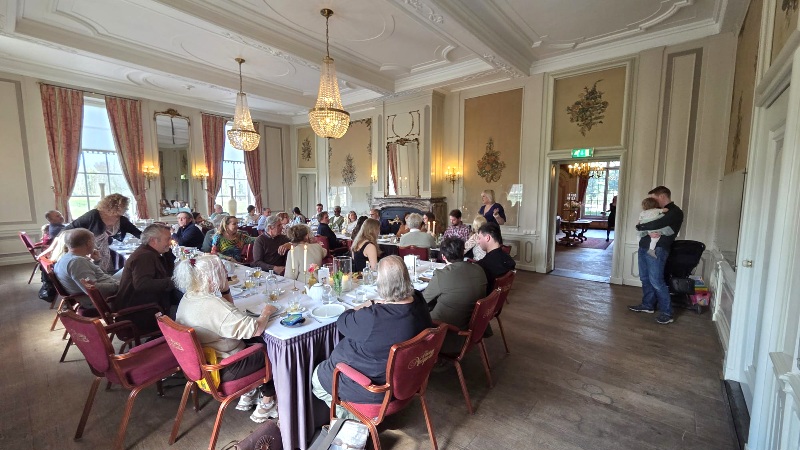 Daarna nam ik zelf het woord en bedankte ik iedereen voor zijn/haar komst en toen stelde ik iedereen aan elkaar voor, de meeste kennen elkaar wel of hadden zoveel van elkaar gehoord dat het nu leuk was de mensen in levende lijve te zien of om na zoveel jaar elkaar weer te zien, allemaal een stukje ouder geworden maar nog steeds heerlijk stralend. Daarna begonnen we met de zoete ronde met zalige lekkernijen en thee of koffie.