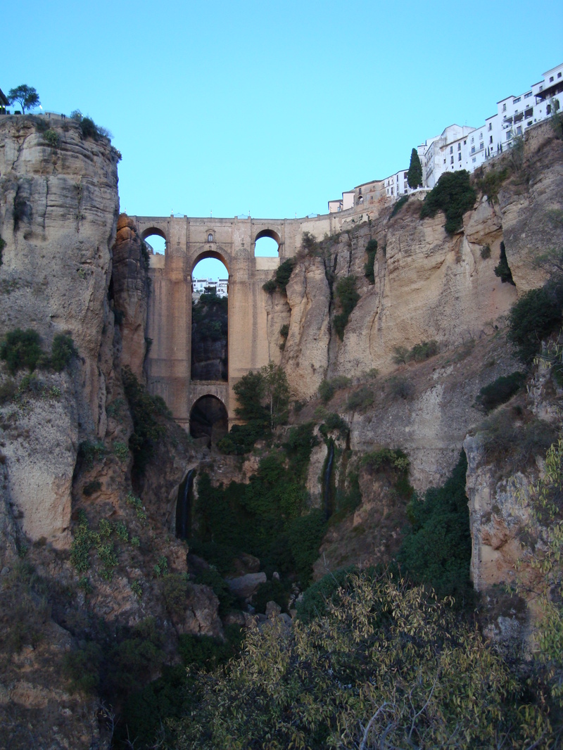 B&B Boabdil  Deze B&B wordt gerunt door Fleur. Zij woont sinds 3 jaar in Spanje samen met haar man Sam. Ze hebben een zoontje van 7 maanden, een schatje, en ze hebben dit questhouse sinds 2 jaar. Sam runt 2 eigen winkels in Ronda, een internetcafe en een videotheek.  Fleur is erg aardig en ze verteld ons dat we op dat moment de enige gasten zijn. We mogen gebruik maken van de keuken als we willen, deze is speciaal voor de gasten samen met een  woon/eetkamer. In totaal hebben ze  4 kamers, zelf wonen ze iets verderop, er komen veel gasten uit verschillende landen, ook buiten europa. Spanje_andalucia_2009_229Spanje_andalucia_2009_233Spanje_andalucia_2009_234Ronda is echt een leuke stad, veel leuker dan we gedacht hadden. De lokatie is uniek, boven op een rots, het oude gedeelte van de stad ligt gescheiden van de nieuwe stad door een enorme kloof, bekend als El Tajo. De beide delen van de stad zijn verbonden met elkaar door de brug Puente Nuevo gebouwd in 1793. Vanaf de brug hebt je een spectaculair uitzicht over de kloof en de omgeving. Fleur vertelde dat we zeker moesten gaan naar de  Casa del Rey Moro, dit pad leidt naar beneden de kloof in,  de traptrede (la Mina) zijn uitgehakt uit steen. Dat konden we nog net halen voordat het donker werd. Best een pittig stukje zijn we naar beneden gelopen en het uitzicht was groots. We gingen er even bij zitten om te genieten, zo prachtig en een schitterend uitzicht over de brug.