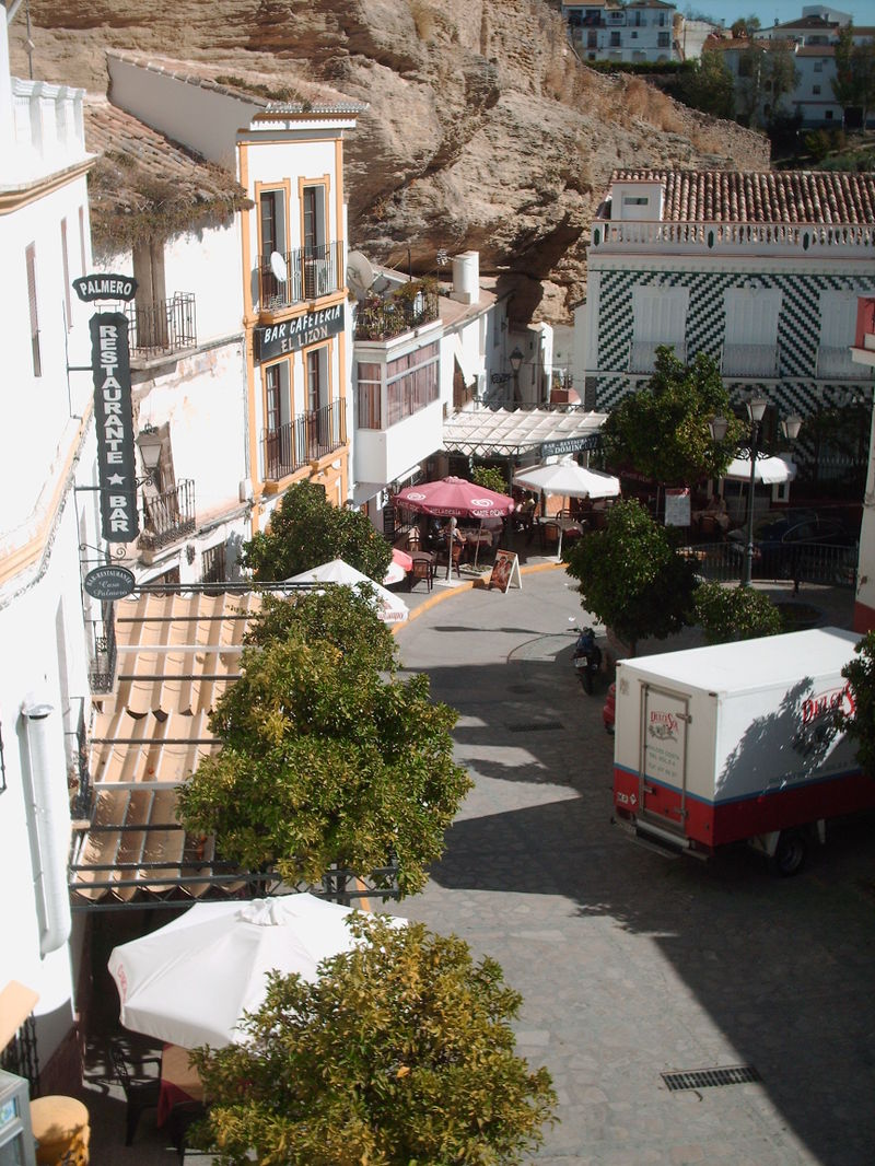Na Ronda zijn we in 30 minuten naar Sentil de Las Bodegas gereden. Dit dorpje is bekend om de woningen die wel lijken geplakt te zijn in de rotsen. Deze rots woningen zijn weer heel anders dan die we gezien hebben vorig jaar in Guadix.