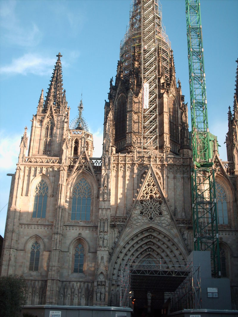 Na het shoppen bij de haven liepen we in de smalle straatjes van de wijk Barri Gotic op zoek naar een leuke lunchtent. In de straat Avinyo vonden een heel leuk restaurant Sukur We bestelde daar een menu Del Dia, een verukkelijk 3 gangenmenu incl drankje. Echt een aanrader. Daarna liepen we naar de gotische kathedraal van Barcelona, de Cathedral de Santa Eulalia aan Plaza de la Seu. Het is nog steeds de kerk van de barcelonezen ondanks dat er ook heel veel toeristen komen om de kerk van binnen te bewonderen.