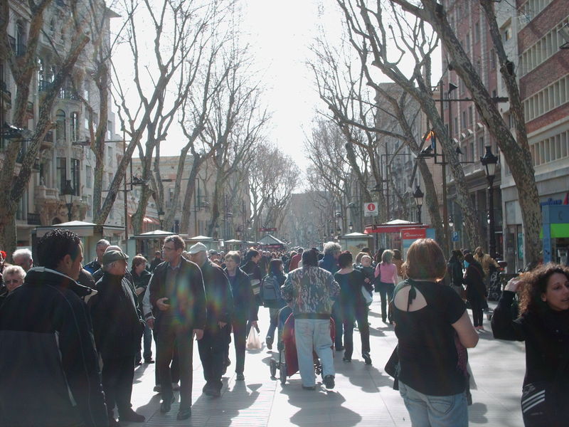 La Rambla is een brede drukke 1 km lange boulevard die alleen toegankelijk is voor voetgangers, aan beide zijkanten rijden wel auto’s en aan de straatkant zitten winkels en restaurants. Op de boulevard vind je kiosken,bloemenstalletjes, dierenwinkeltjes met kleine diertjes zoals, konijnen, muizen, vogels en er staan vele straat artiesten als levend standbeeld een centje bij te verdienen. La Rambla begint bij de Plaza de Catalunya en eindigd bij de haven bij het monument van Columbus.