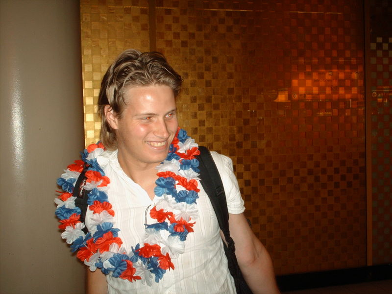 De vlucht ging voorspoedig met continental airlines, hij moest alleen overstappen in Houston en kwam precies op tijd op schiphol aan. Toen ik hem omhelsde voelde ik meteen zijn dikke spierballen. Hij was een echte vent geworden, even een paar maanden weg onder moeders vleugels en je krijgt er een volwassen kerel voor terug.