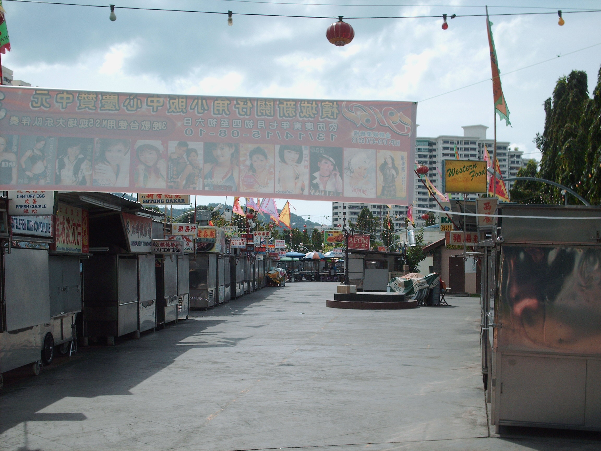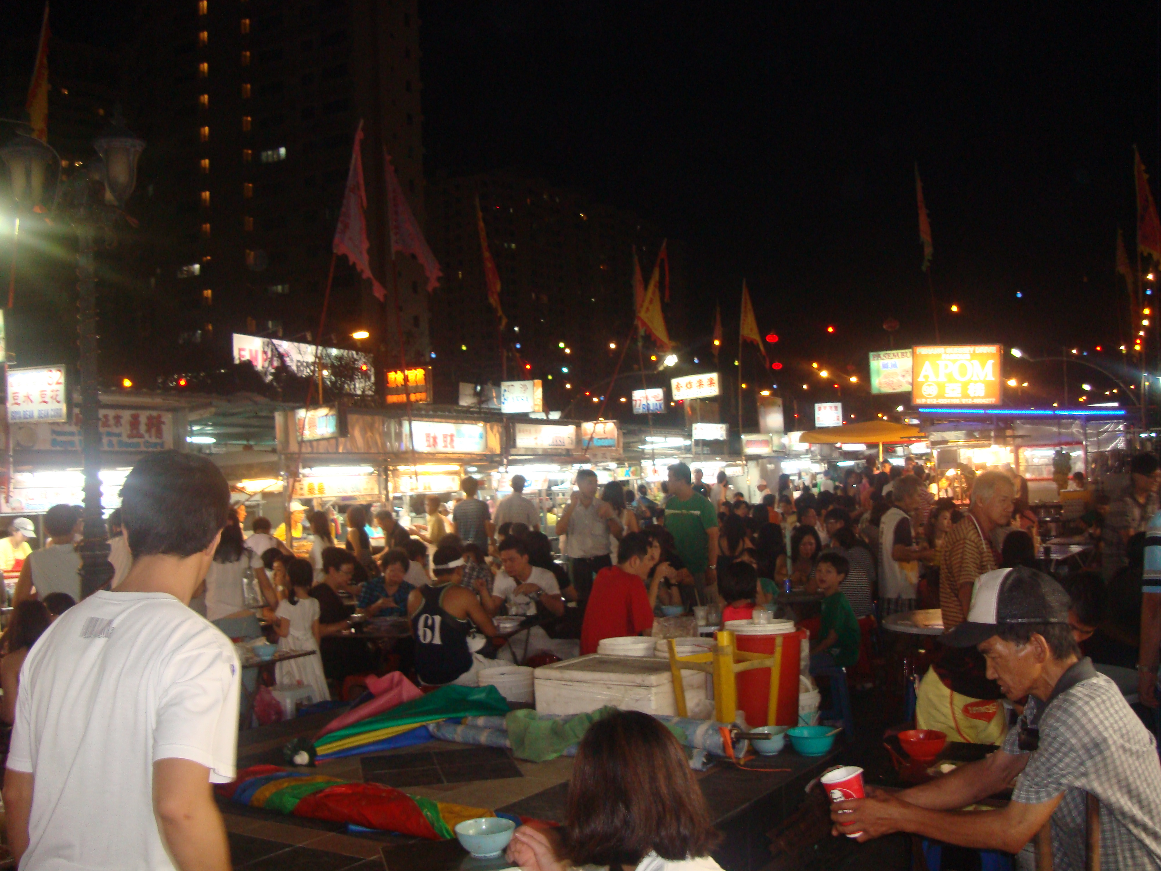 S'avonds zijn we met de taxi naar Gurney plaza gereden een hele grote mall. Vlak daarnaast op Gurney drive vind je de beroemde hawkers foodstalls, dat is een pleintje waar allemaal kleine eetstalletjes staan, elk stalletje verkoopt weer eten van een andere keuken, Zo kan het gebeuren dat mensen aan 1 tafeltje de Maleise satay eten samen met een indiaanse roti canai en de ander heeft hokkien mee met tandoori chicken, je koopt gewoon wat je lekker vind en eet het op, op het middenpleintje, ontzettend goedkoop en heel leuk om te doen, maar wel een druk en rommelig gebeuren.