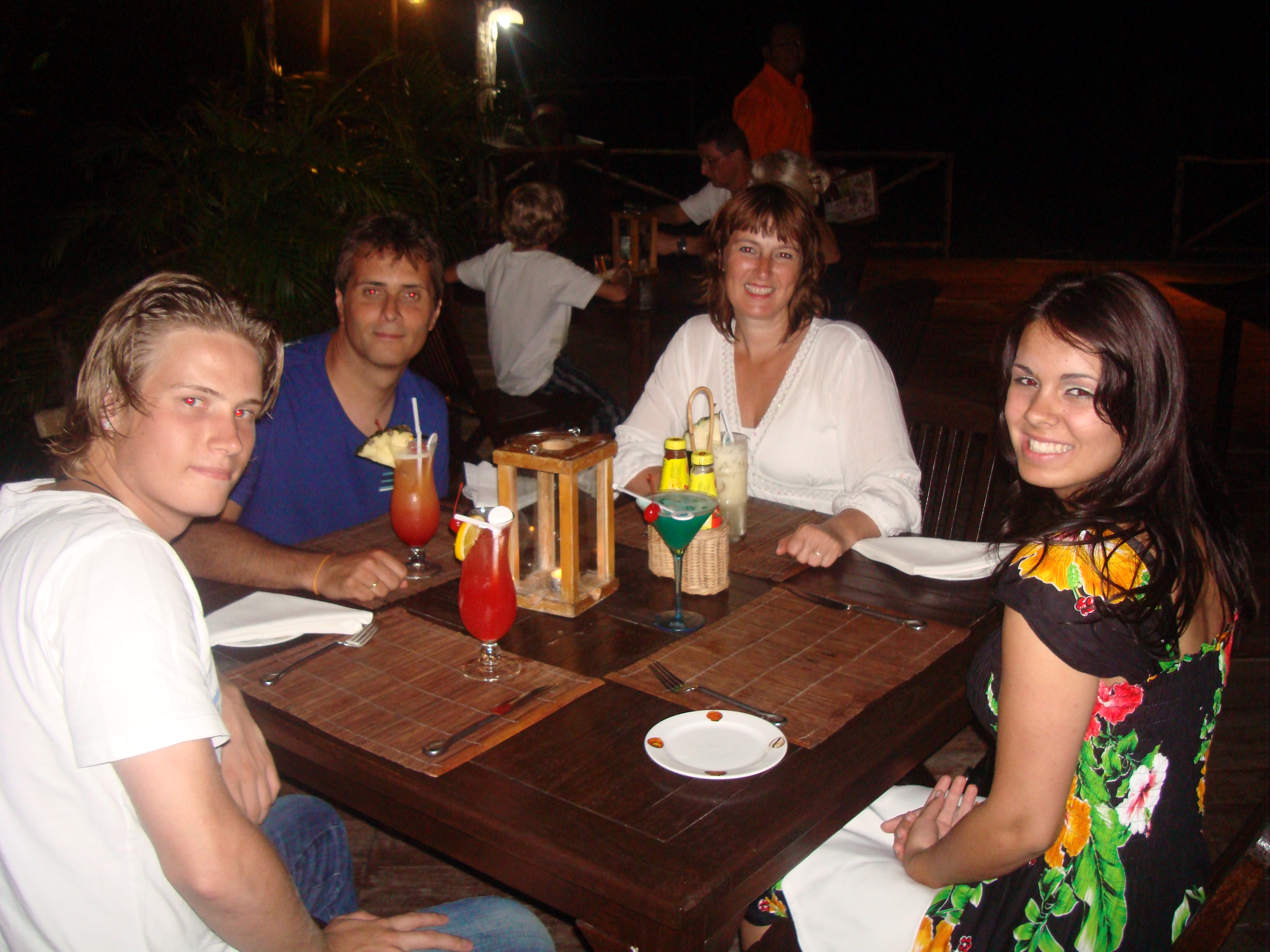 S avonds zijn we via het strand gelopen naar het naast gelegen Mutiara resort waar elke avond aan het strand een liveband speelt in the Sealshell beach cafxc3xa9, een onwijs gave tent op een houten vlonder pal aan het strand, ze hebben er zalige cocktails en lekker eten, het was er allemaal net iets goedkoper dan bij ons op het resort. De band speelde van alles, heerlijke nummers voor jong en oud, we hebben zelfs nog even gedanst, we zijn er tot het laatst gebleven en met de shuttlebus service zijn we weer terug gebracht naar ons resort.(dat moest ook wel na al die verrukkelijke cocktailtjes)