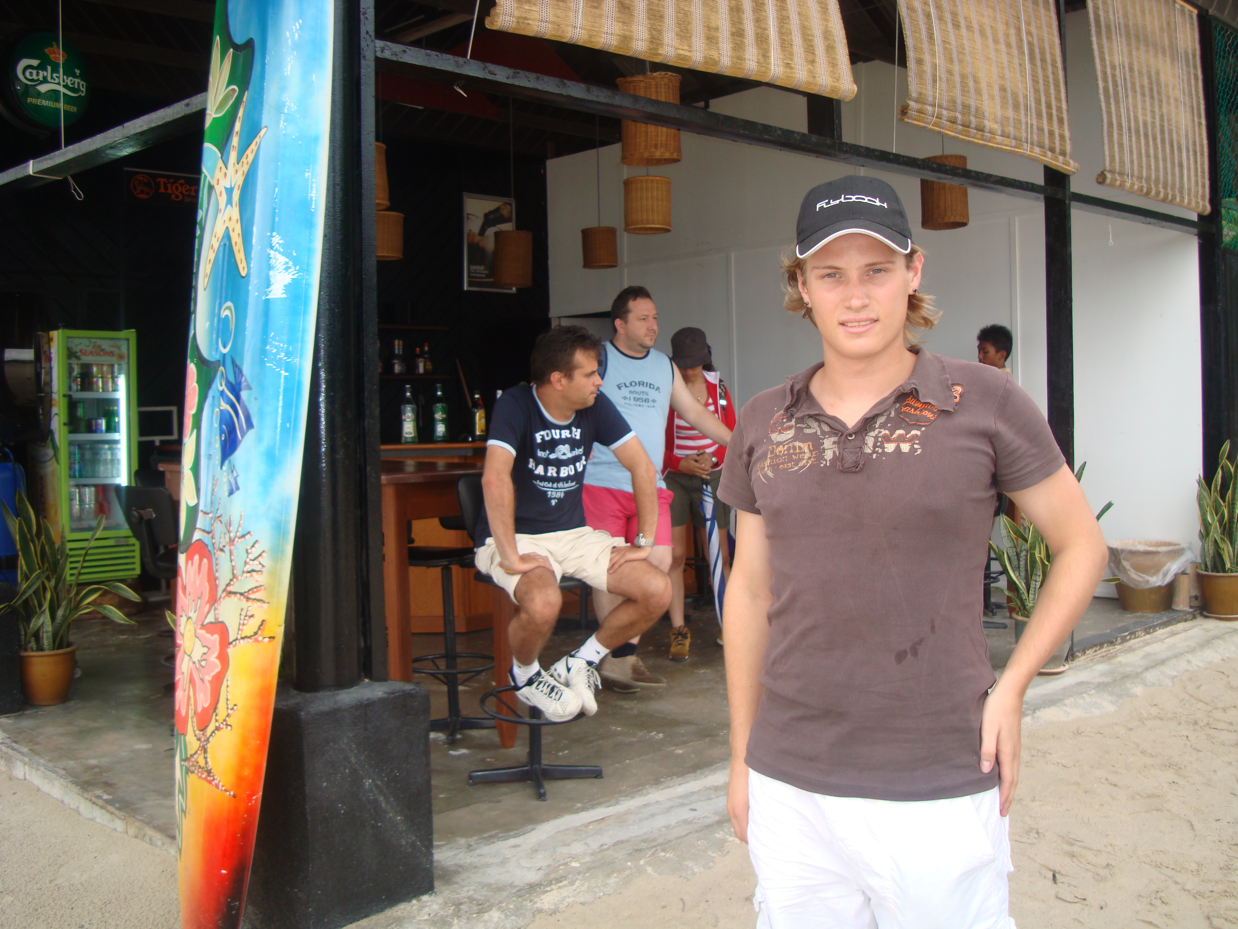 Na het eten zijn we nog even het strand opgelopen en daar hoorden we de klanken van een gave reggeaband( de Kingkongs) in de het beachcafxc3xa9 Babylon. Er lagen matjes op het strand waar je op kon zitten, het was er heel relext. We zijn daar de hele avond verder gebleven want er hing echt een supersfeer, we raakte aan de praat met de manager van die tent en die nodigde ons uit voor een feestje vanwege de ramadan over 2 dagen, gezellig we komen zeiden we.