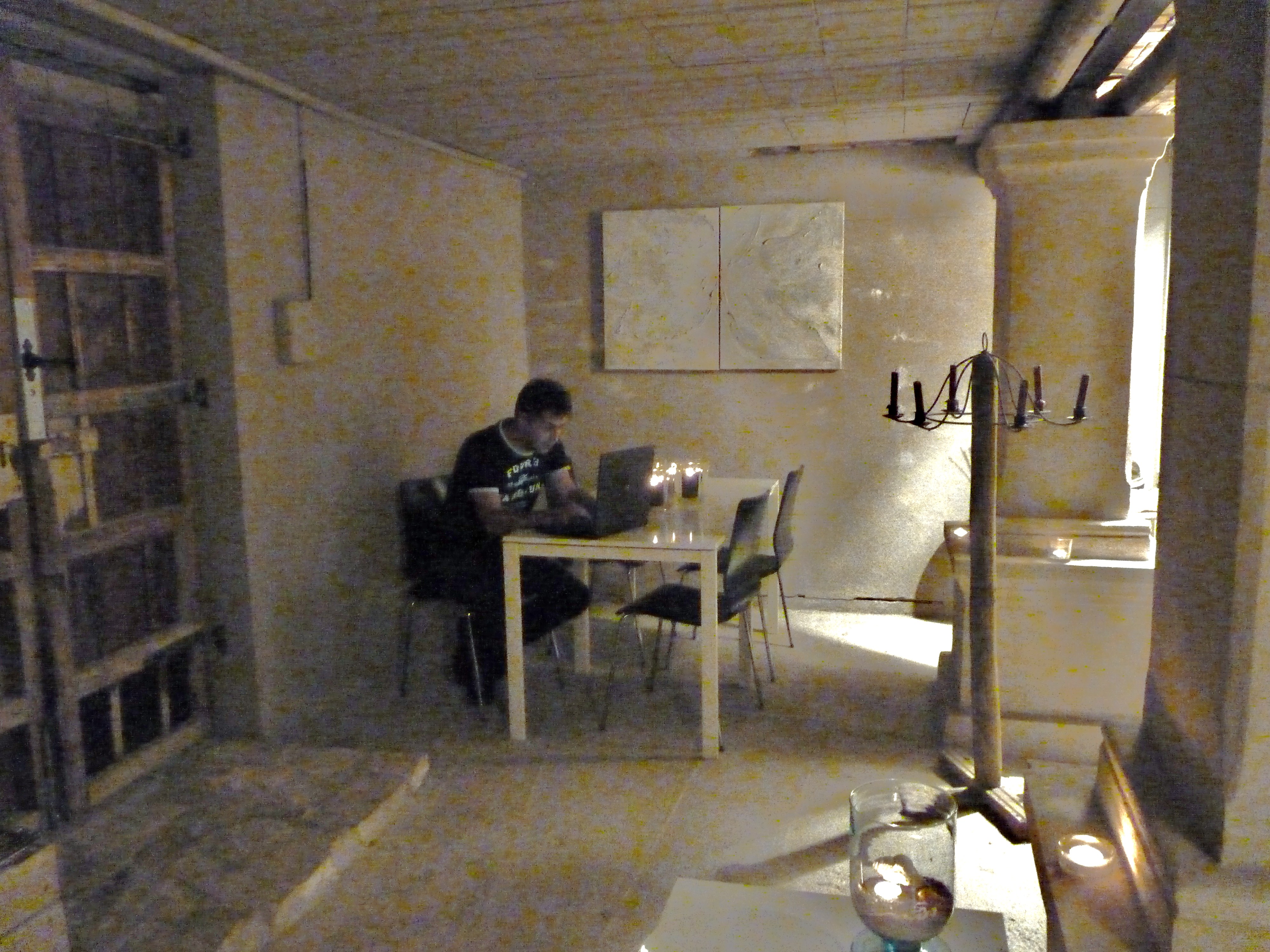 Na het uitgebreide onbijt, gezellig met z’n viertjes, ging mijn man nog even op de computer want we hadden wifi hier, erg prettig, daardoor konden we het thuisfront laten weten dat alles ok is.