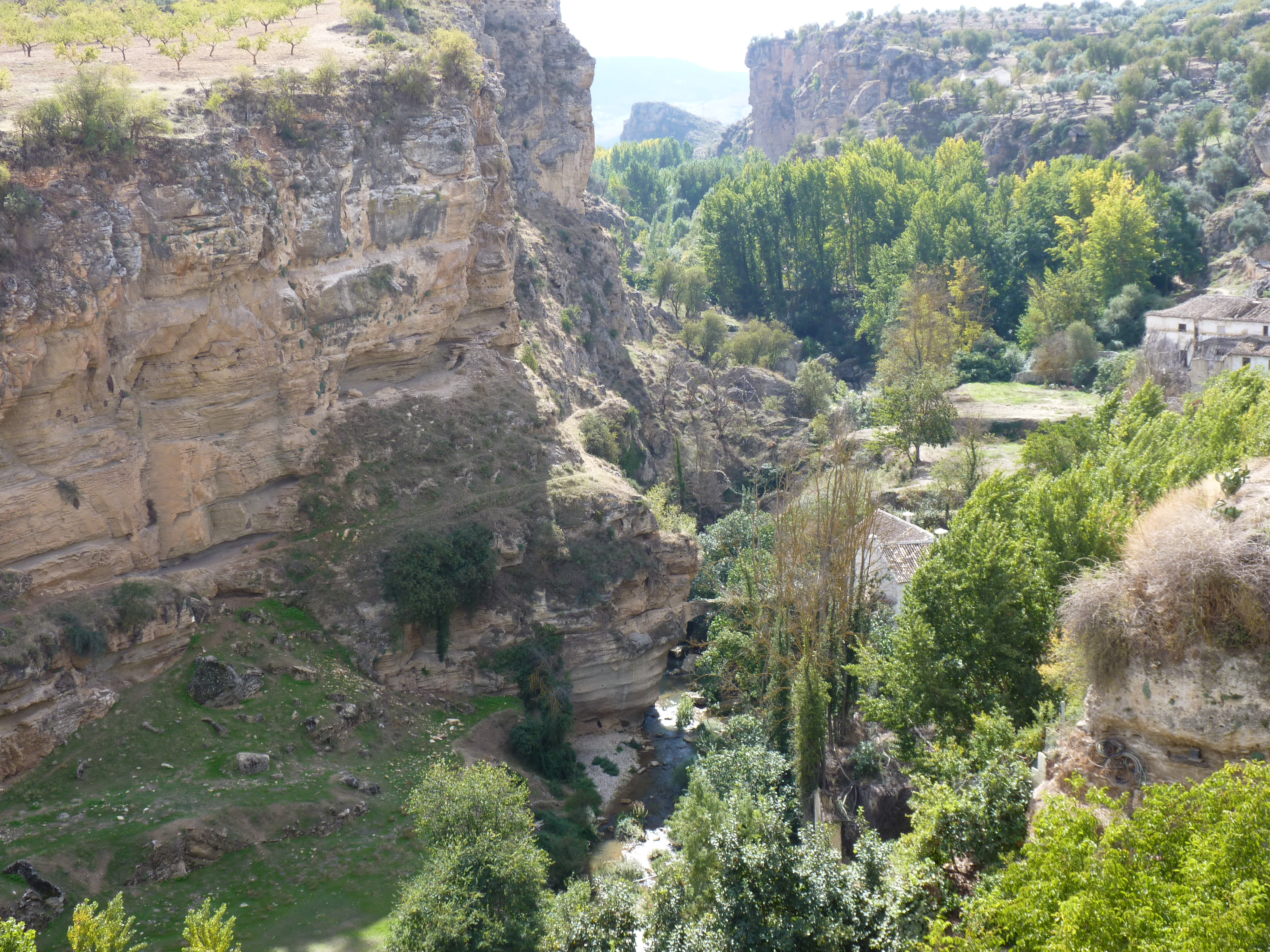 Ik was namelijk erg verkouden en had last van mijn keel. Helaas was de douche niet echt warm, maar buiten was het wel warm, het was een zeer zonnige dag gelukkig, maar eerst even langs de farmacia en daar zitten er genoeg van in Spanje, zelfs in het kleinste dorp heb je er wel 1 of 2 zitten. Anneloes had nog een zakje met een pepmiddeltje van paracetomol met nog iets erin, werkt altijd erg goed vertelde ze. Daar heb ik maar een doosje van gekocht onderweg naar Alhama de Granada, een klein plaatsje met 6000 inwoners in de provincie Granada. Het plaatsje is bekend omdat het aan de rand ligt van een diepe kloof.
