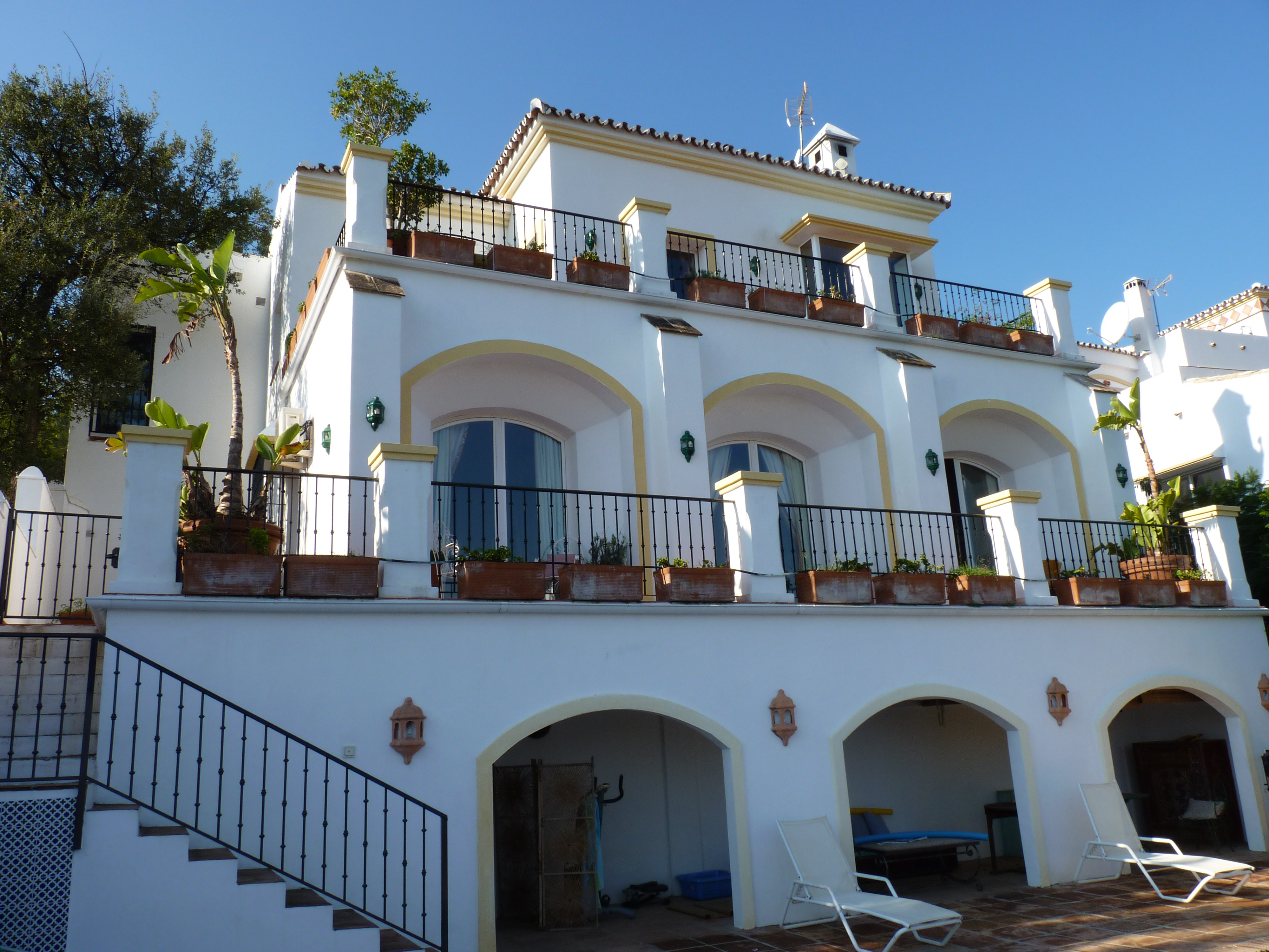 Alles in dit huis is bijzonder sfeervol, het huis bestaat uit 3 verdiepingen die heel groot zijn, elke verdieping heeft een groot buiten terras, een soort balkon, dit omdat het huis op een heuvel gebouwd is, op het terras vind je het zwembad. Ze hebben ook een grote binnentuin.