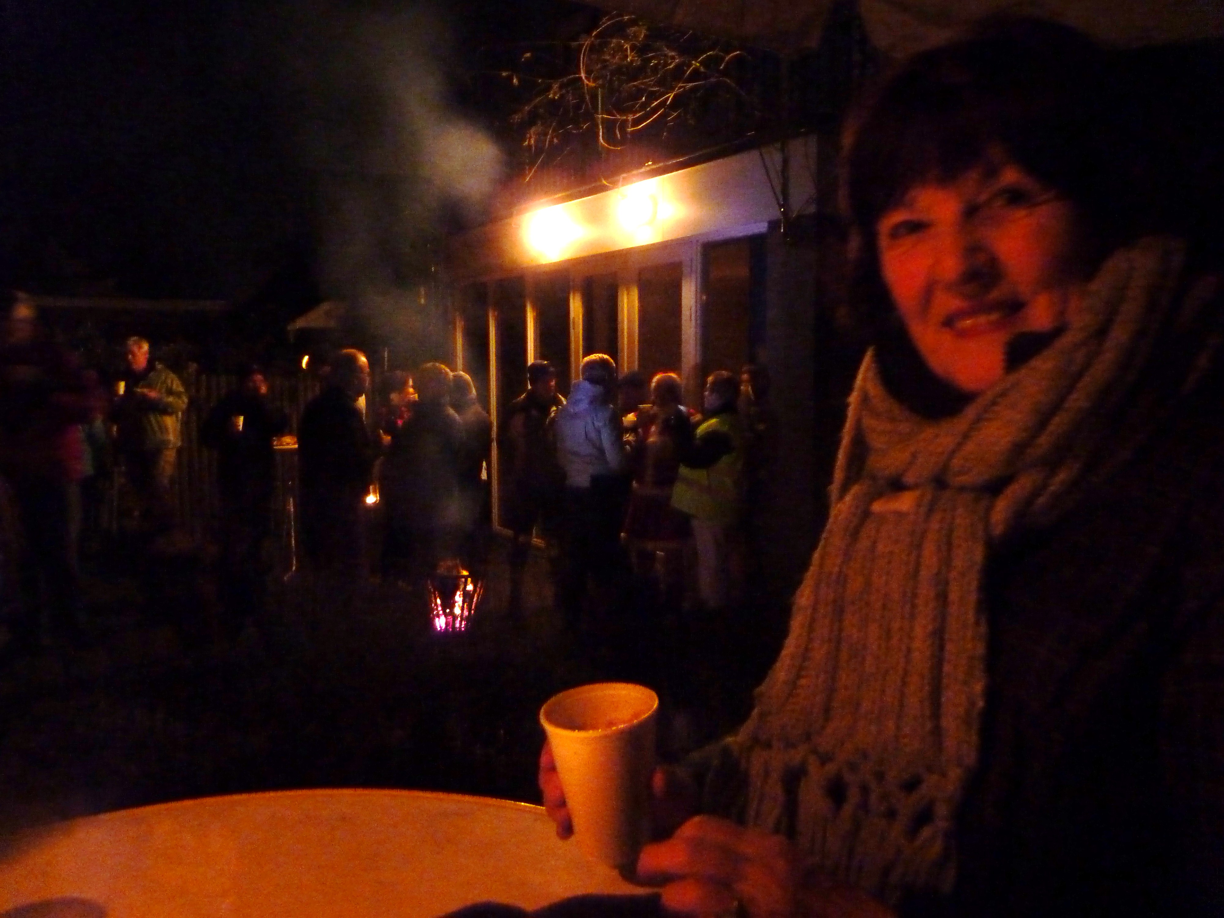 Het was zalig, lekker kletsen onderweg maar ook genieten van de avondstilte en na 1.5 uur gelopen te hebben, konden we gluhweijn en chocomelk drinken in de tuin van de organisator. Hij had zijn tuin versierd met lampjes en er stonden vuurkorven.