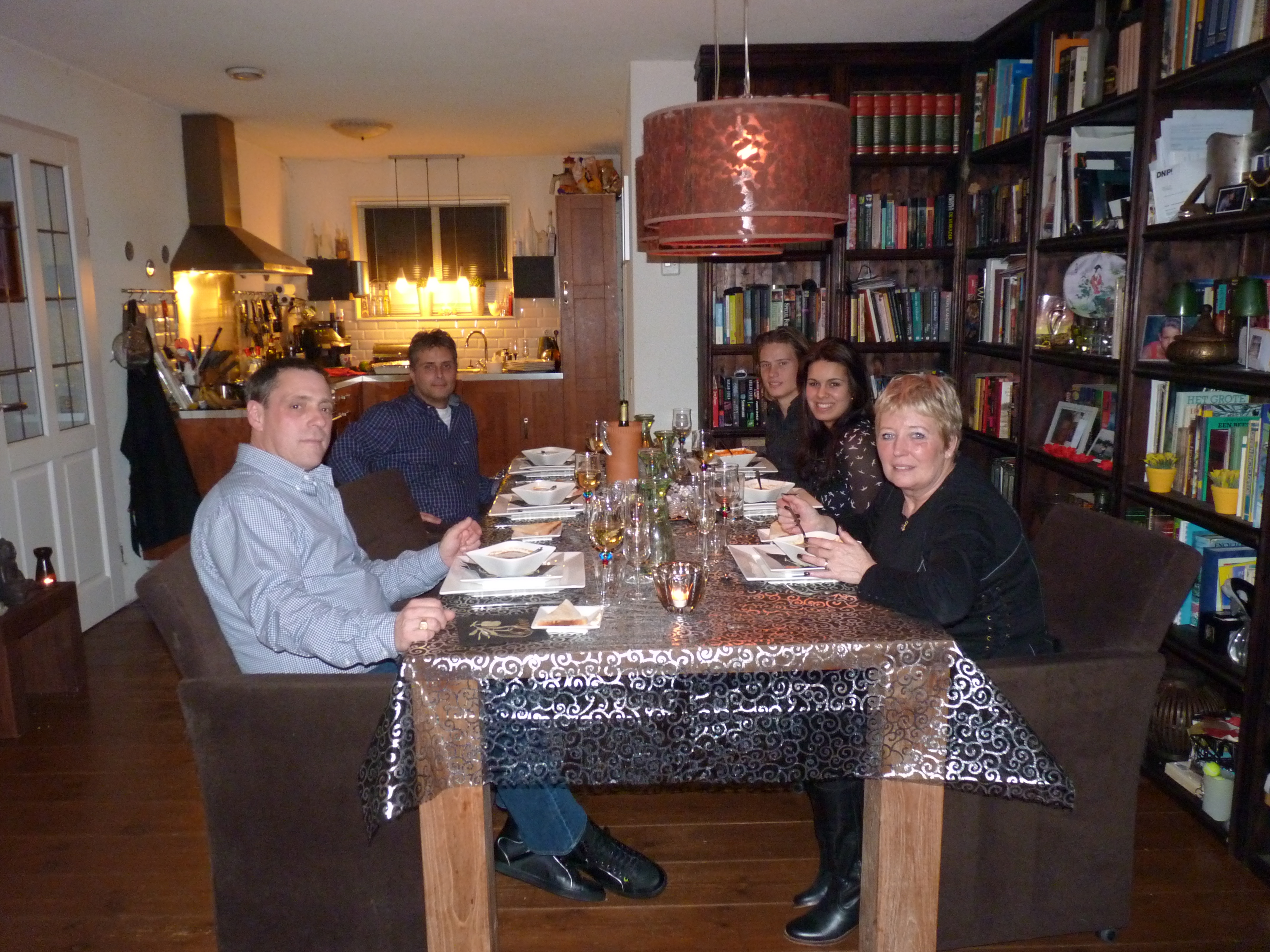 Het was dus ook nog even spannend of mijn schoonzus zou komen eten op kerstavond want zij woont helemaal in Hoorn en hoe zou het op de weg zijn. Gelukkig hadden Marja en Hidde de rit gewaagd, het was een hele gezellige avond geworden en haar broertje had een lekker gangenmenuutje gemaakt. Lesley was lekker al een aantal dagen vrij en had de tijd, hij vond het leuk om zijn zus te verwennen met een lekkere culinaire maaltijd. Het is altijd gezellig om met een klein groepje aan tafel te zitten want met een verjaardag zijn er altijd zoveel mensen dat je er nauwelijks aan toe komt om echt met elkaar te praten. Onze kids deden volop mee aan het gesprek en we hebben allemaal erg genoten van het lekkere eten en van elkaar. Een superkerstavond.