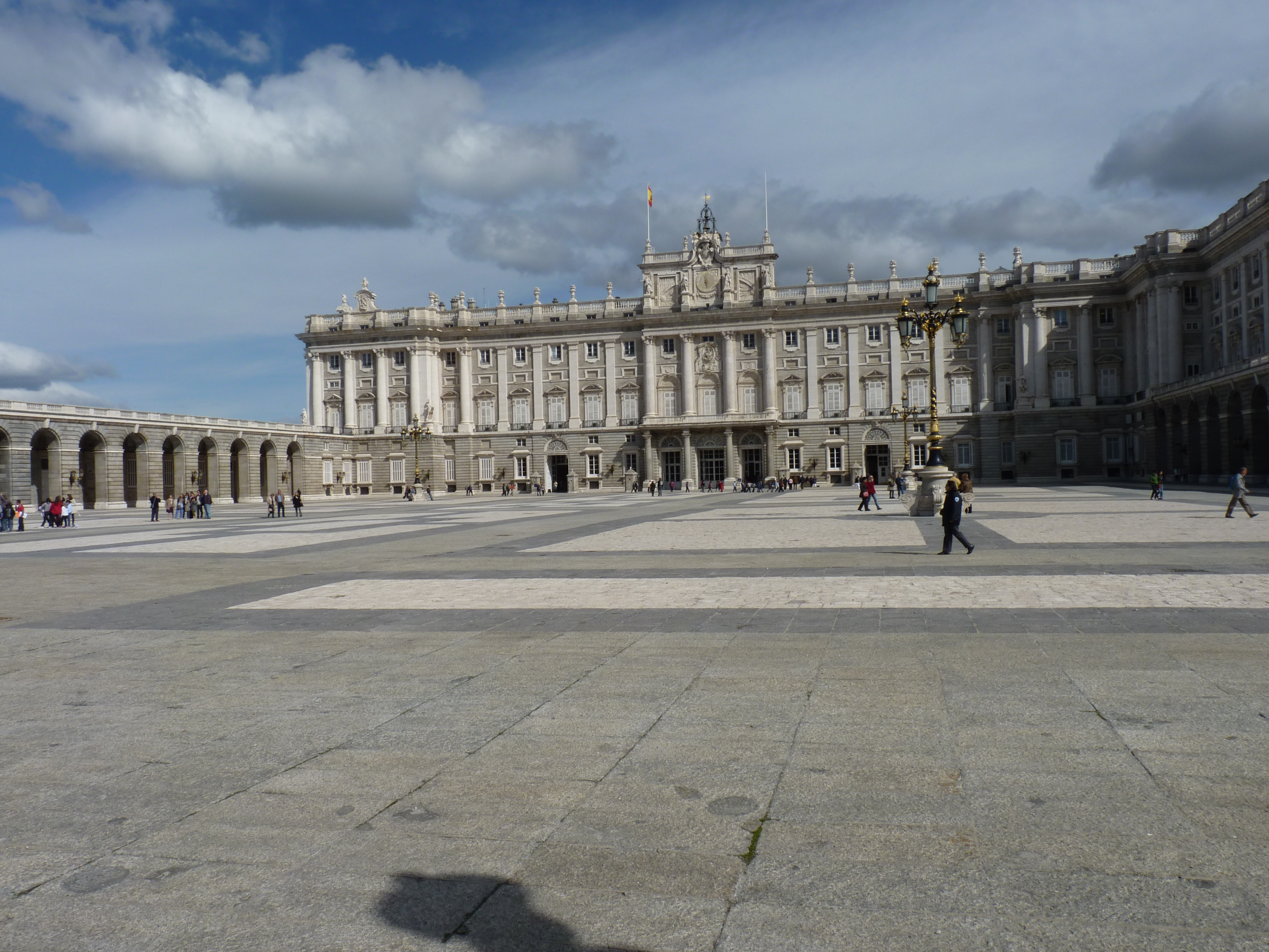 Vandaag waren we iets langer in bed blijven liggen, best wel moe van de vorige drukke dagen aan de onbijt tafel zaten we alleen met z'n drie. We liepen dit keer rechts de deur uit ipv links nu richting het Palacia Real, wat nog geen 5 minuten lopen is bij ons vandaan. Dit enorme grote gebouw stamt uit 1734. Carlos III nam als eerste zijn intrek hier. Het heeft 2800 kamers waarvan er 50 openbaar zijn en bezocht kunnen worden door het gewone volk. Volgens het boekje 100% Madrid kunnen we hier woensdag gratis naar binnen anders kost het xe2x82xac10, en we blijven wel Nederlanders hxc3xa9, dus we komen hier terug.