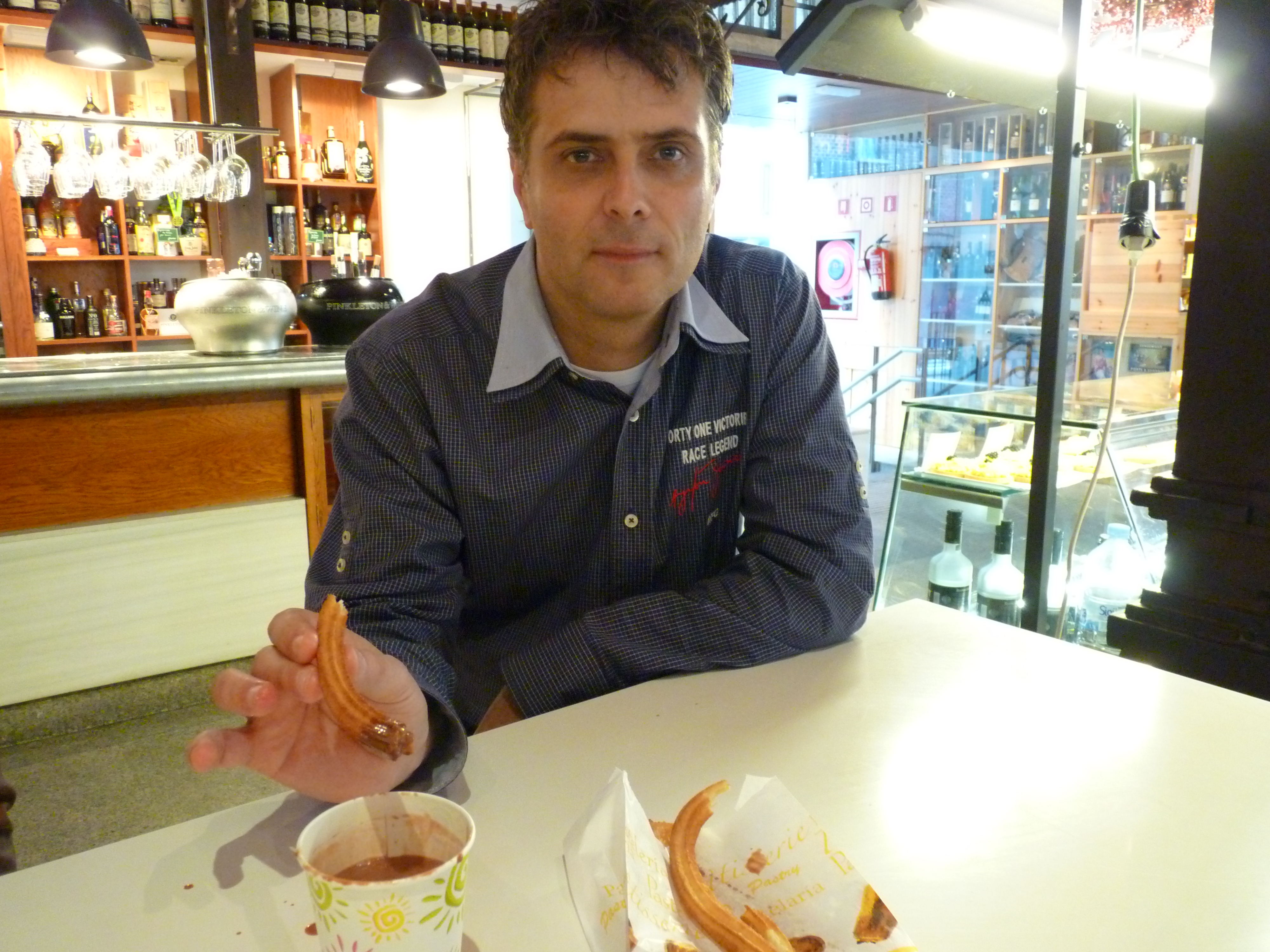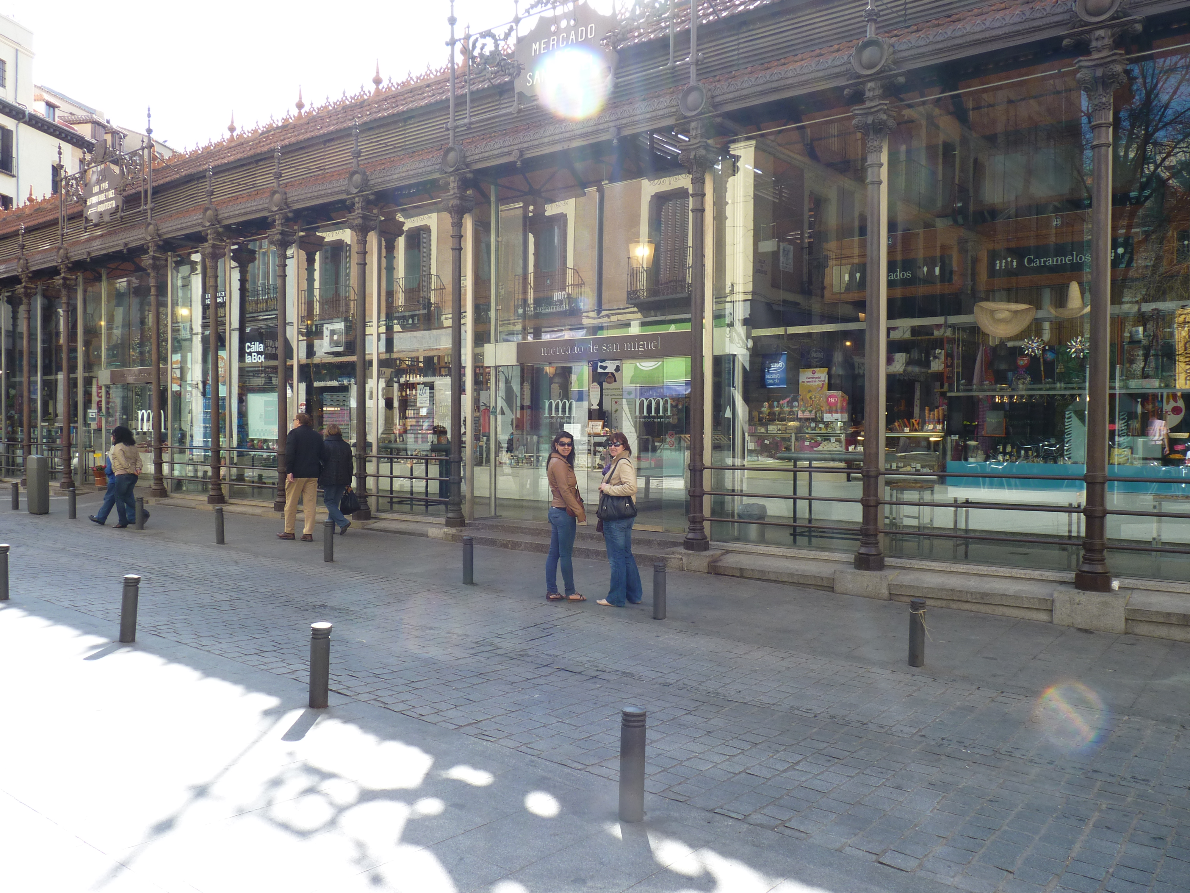 We liepen eerst naar Mercado San Miquel vlakbij de Calle Mayor, dit is een met glas overdekte markt, maar zo mooi dat ik er helemaal van onder de indruk was. Het zijn allemaal moderne stalletjes waar je taartjes, tapas, wijntjes en andere lekkernijen kunt kopen, omdat ik nog vol zat van het ontbijt hebben we hier alleen wat chocolate met churros gegeten maar we spraken met elkaar af dat we hier vanmiddag terug zouden komen om nog wat te gaan smikkelen.