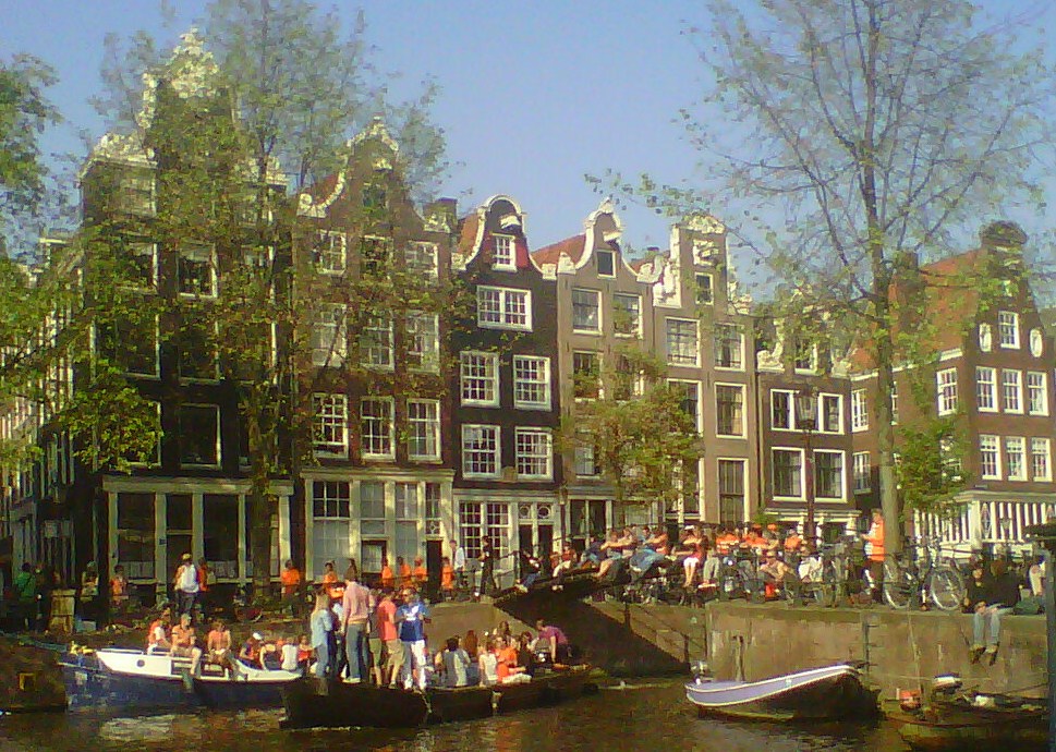 Op de Amsterdamse grachten was het weer een drukte van jewelste, vrienden van ons hadden een boot gehuurd en wij mochten mee. Ik had er speciaal een oranje shirt voor gekocht.