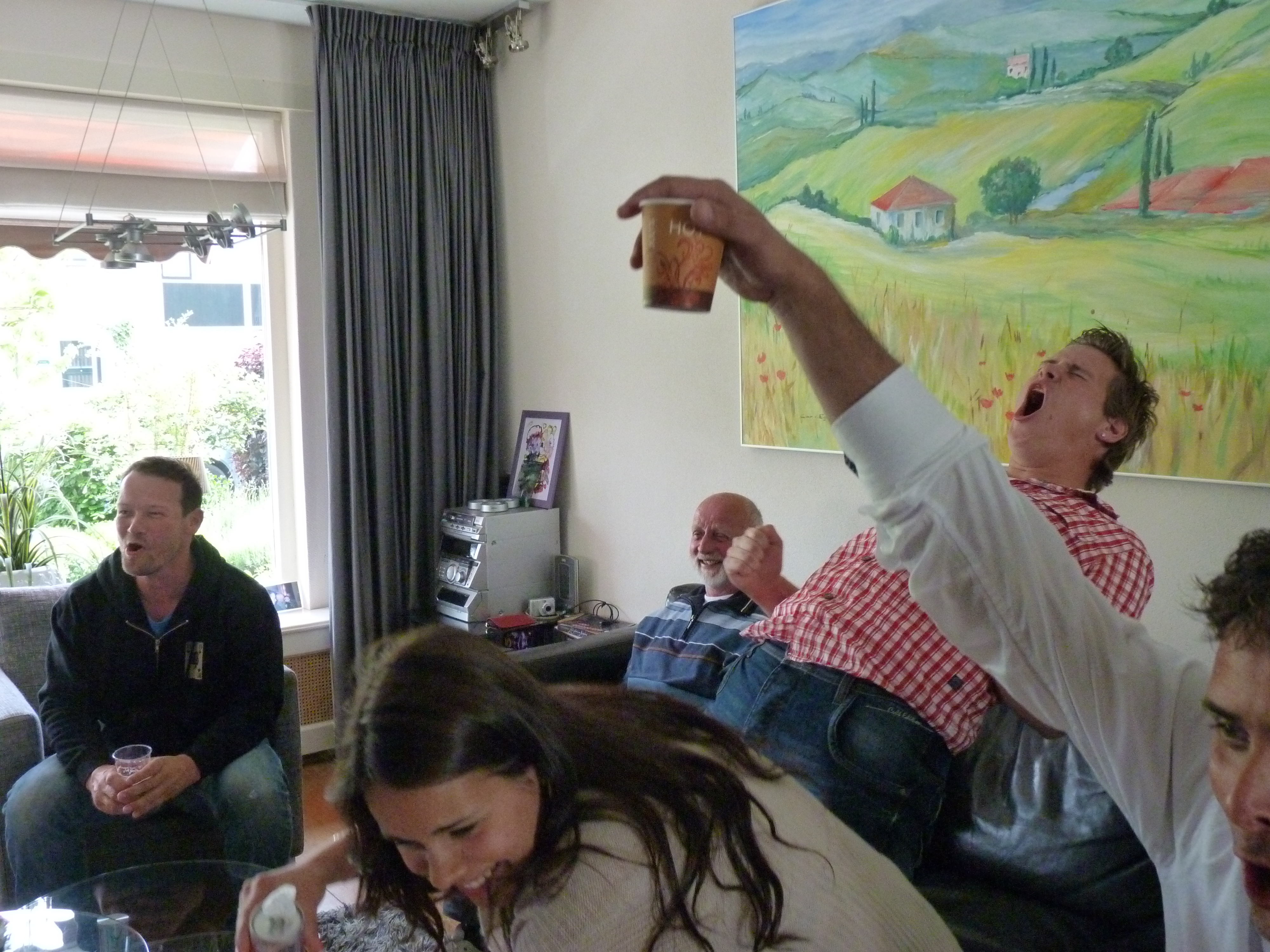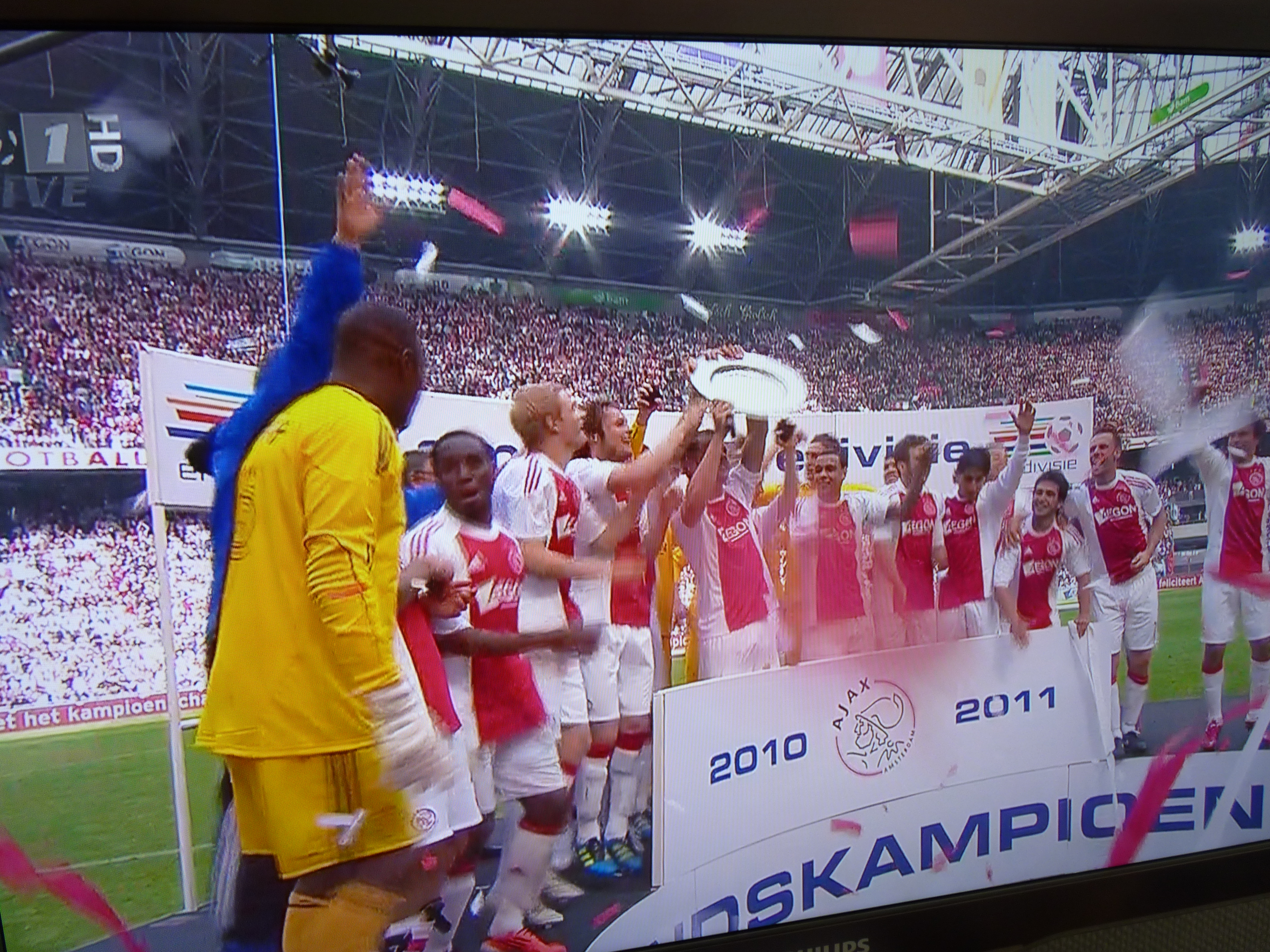 Alleen de meeste mannen zaten binnen want daar was de spannende wedstrijd te zien van Ajax tegen Twente. Mijn mannen waren door het dolle heen toen Ajax landskampioen werd, de feestvreugde was enorm. P1020457