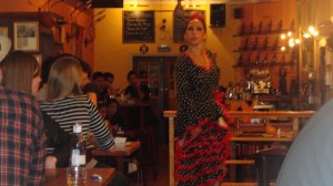 Daarvandaan gingen we de stad in en bij bodega/bar El Pimpi dronken we een wijntje en aten een klein tapasje, een leuk Spaans plekje, daarna liepen we nog een rondje door de binnenstad en rond 9 uur belanden we bij restaurant Vino Mio waar we nog net de laatste klanken van de Spaanse gitaar muziek en het geklepper van de castagnetten van de in Spaans gehulde kledij van de danseres hoorden. Dit restaurant is van een Nederlandse vrouw en ik had de naam Vino Mio al vaak horen vallen dus ik was wel benieuwd. Het verbaasde me alleen dat de keuken niet echt Spaans was, maar meer een wereldkeuken, met oa kangoeroe en noedels op de kaart. Maar het was lekker en gezellig, om ons heen hoorden we alleen Nederlands praten van andere toeristen die schijnbaar ook net als wij de tips hadden gelezen hier te gaan eten, de Spanjaarden zelf zaten aan de bar een cerveza te drinken. Na de maaltijd werden we uitgenodigd om een drankje van het huis te komen drinken in hun recent geopende loungebar wat even om de hoek lag, goede marketing, want het was een hele gezellige trendy tent.