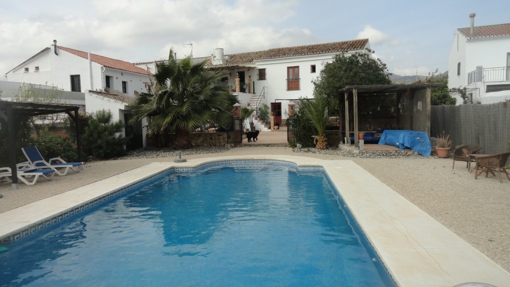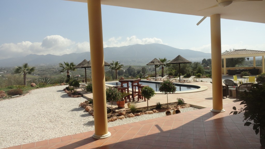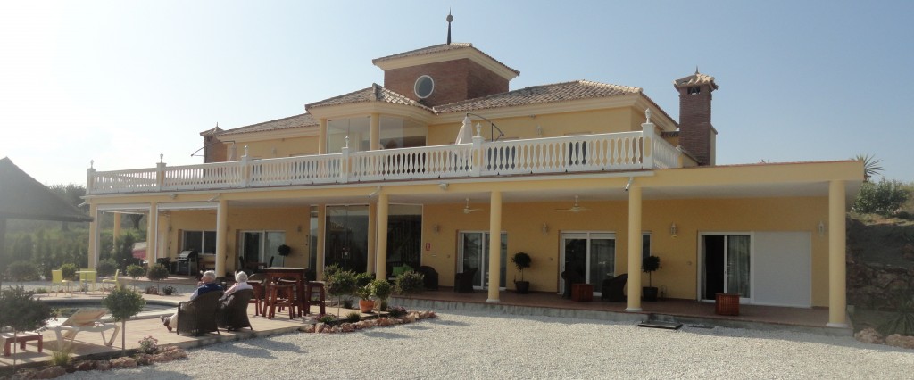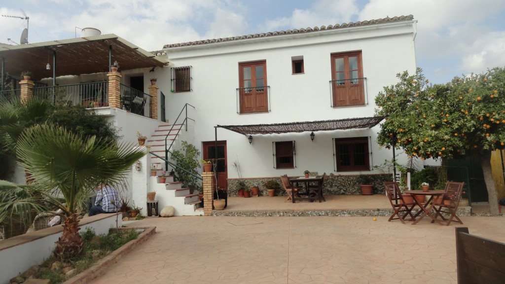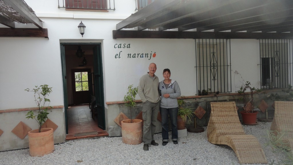Alles was stijlvol en redelijk strak ingericht maar wel met een Spaans tintje, alhoewel alle meubels uit Nederland kwamen had het huis toch een moderne mediterrane uitstraling. Twee vriendelijke heren (Jan en Jos) boden ons een lekker glaasje wijn aan en kwamen gezellig met ons kletsen, daarna kregen een een kleine rondleiding. Omdat het tegen de avond wat frisser was en we daardoor geen zin hadden om buiten of op onze kamer te zitten reden we naar het dorpje Coin waar we bij een winkel aan de weg, die spulletjes uit verschillende landen verkocht, even gingen rond snuffelen. Ik vond een hele mooie Andalusische waskom en die kon ik niet laten liggen, ik zag hem al helemaal in ons nieuwe huis staan.We zijn ook nog bij een tuincentrum wezen kijken, gewoon om te zien wat ze allemaal daar verkopen en ook of we nog leuke dingetjes en mooie planten zagen. S avonds hadden we nog steeds geen trek om te eten, we zaten nog zo vol van onze middag maaltijd, we hebben toen maar binnen in het huis naast de trap waar ze een gastentafeltje hebben staan een wijntje gedronken. De volgende dag kregen we een uitgebreid ontbijt en samen met andere gasten zaten we buiten te eten. Ze hebben 5 gastenkamers en ze hadden die nacht 4 kamers verhuurd, niet slecht voor eind maart. Met een notitieboekje met een foto van hun pand erop en wat adresjes van werkmannetjes en tips erin vertrokken we weer.