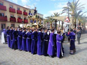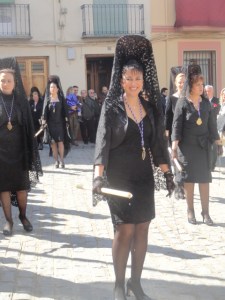 Het is Semana Santa in Spanje, de week van de paasvieringen, de donderdag en vooral de vrijdag (goede vrijdag) zijn de meest belangrijke dagen, het land is in feeststemming en als je niet mee loopt in de processie dan sta je wel langs de kant te kijken naar vrienden of familieleden die dat wel doen en natuurlijk heb je nog de vele toeristen uit verschillende landen die af komen op de voor ons bijzondere optochten. Ik ga al een aantal jaar naar Spanje maar nog nooit was ik er met Pasen geweest, ik wilde ontzettend graag eens zo’n optocht meemaken. Samen met Ibolja ging ik vrijdagochtend rond 11 uur naar Archidona. De mannen gingen verder met de muur af te bikken, terwijl de dames het grote volksfeest gingen meebeleven, goed verdeeld hé. Het was enorm fascinerend om te zien, kinderen, militairen, oude mannen, jonge mannen, oude vrouwen jonge vrouwen allen verkleed in bijzondere kostuums, er werd gezongen, muziek gespeeld, met kaarsen, met bloemen en met wierook gewapperd.