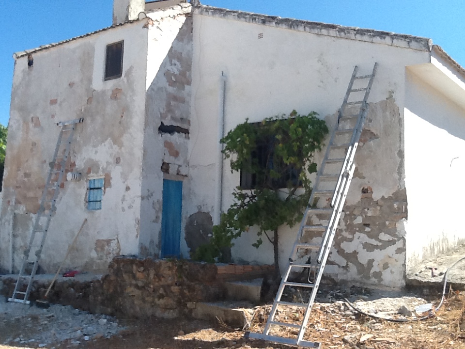 De laatste berichten uit Spanje zijn dat de mannen de grote buiten zijmuur af hebben zitten steken, een behoorlijke klus, dit omdat de muur zo hoog is, verder hebben ze de antennes van het dak gehaald en ze zijn begonnen met het schilderen van de huiskamer.