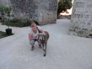 Toen we naar de ontbijtruimte liepen werden we begroet door een mooie hond, een Weimaraner, echt een hond die bij dit huis past.