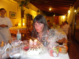Zij hadden vertraging van een half uur en daardoor kwamen wij Spaans laat aan bij Hotel Paloma waar we hadden afgesproken voor een party, party, want Ibolja was 50 jaar geworden.