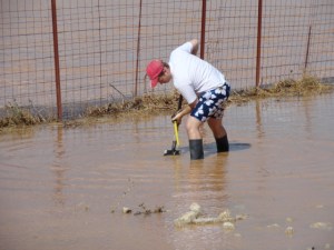 Het water was gezakt van 60cm naar 40cm naar 25 cm, morgen kunnen we vast wel vertrekken.