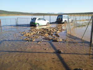 Zal het wel, zal het niet kunnen om te vertrekken vandaag. Er kwam een ochtend zonnetje door het raam heen schijnen. Gisteravond was er nog een mannetje van de Junta de Andalusia van een afstand komen roepen of alles oké was en of we genoeg water en eten hadden, anders kon hij wel wat regelen, ook kon hij wel een trekker regelen die ons de volgende dag eruit kon trekken. Maar wij hadden al met de Engelsen afgesproken dat zij ons zouden helpen.