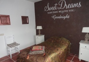 Lesley ging wat schilderijtjes ophangen en ik ging verder met de slaapkamers, ik wilde de wand decoreren met mooie letter stickers.