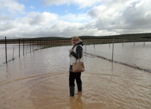 Onze auto stond natuurlijk vooraan de weg en daarom trokken we onze laarzen aan en plonsden we weer door de plassen. Gek hé in Nederland regent het vaak en daar heb ik geen eens laarzen en hier in Spanje heb ik ze al diverse keren gebruikt, wie geloofd dat als ik het vertel!