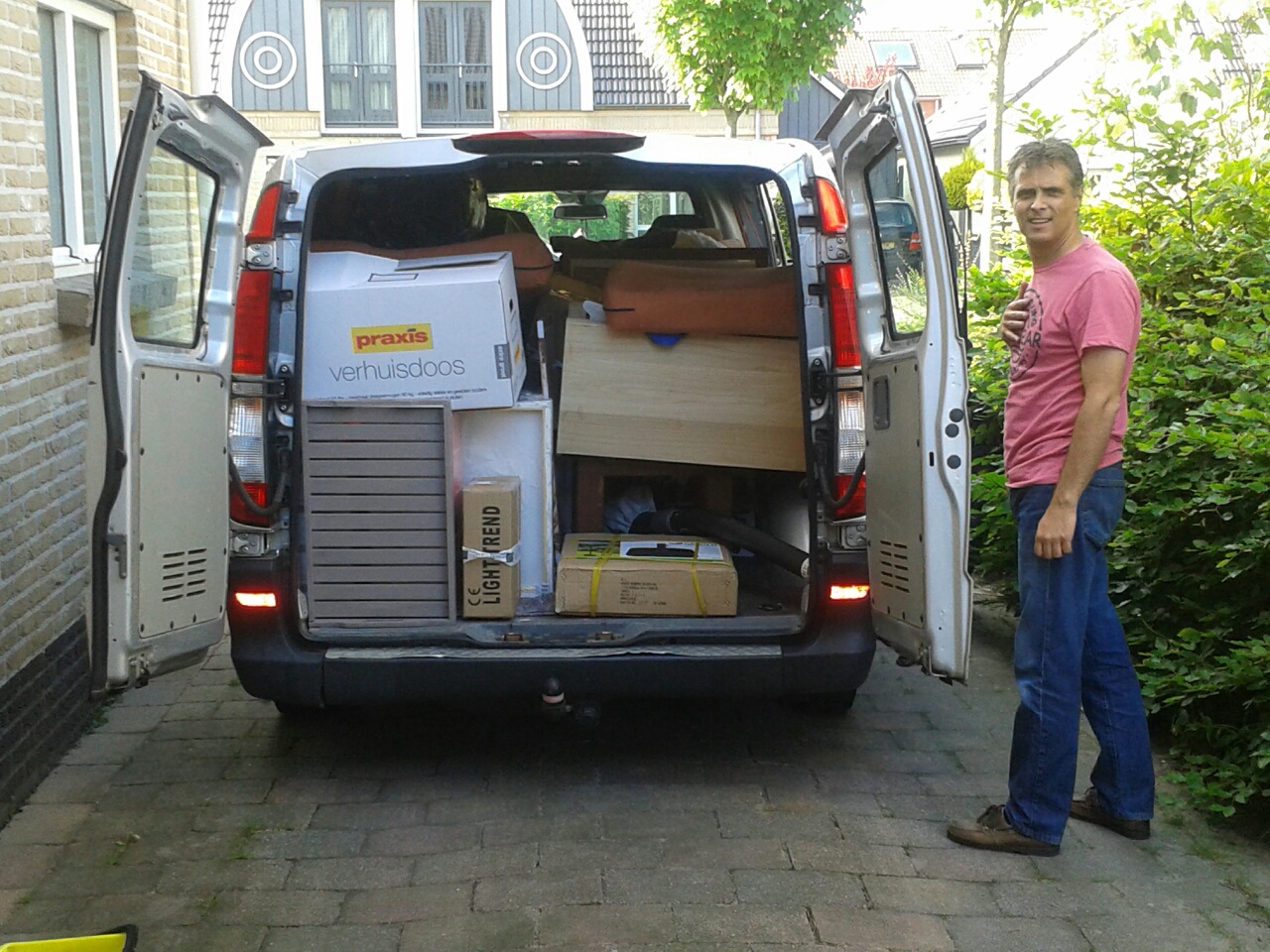 Gisteren kwamen ze hier de bus inladen en wonder boven wonder op 1 stoel na paste alles in de bus.