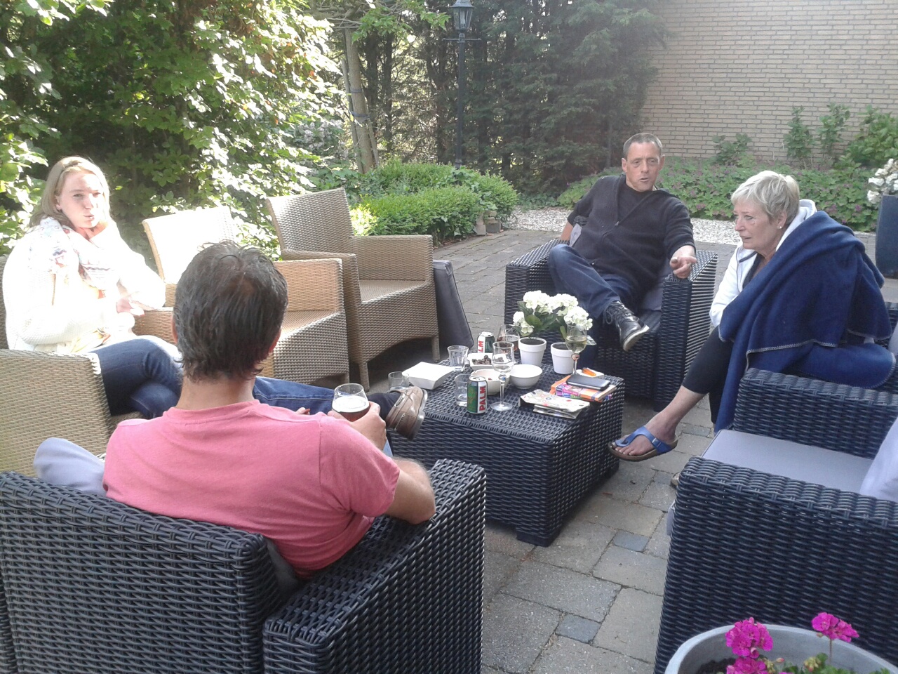 Daarna nog gezellig met elkaar in de tuin gezeten en de route werd nog een keer doorgenomen.