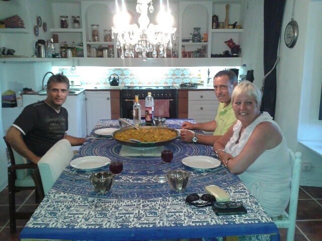 Lesley ging die avond de keuken in en verraste ons met een heerlijke pan echte Spaanse paella.