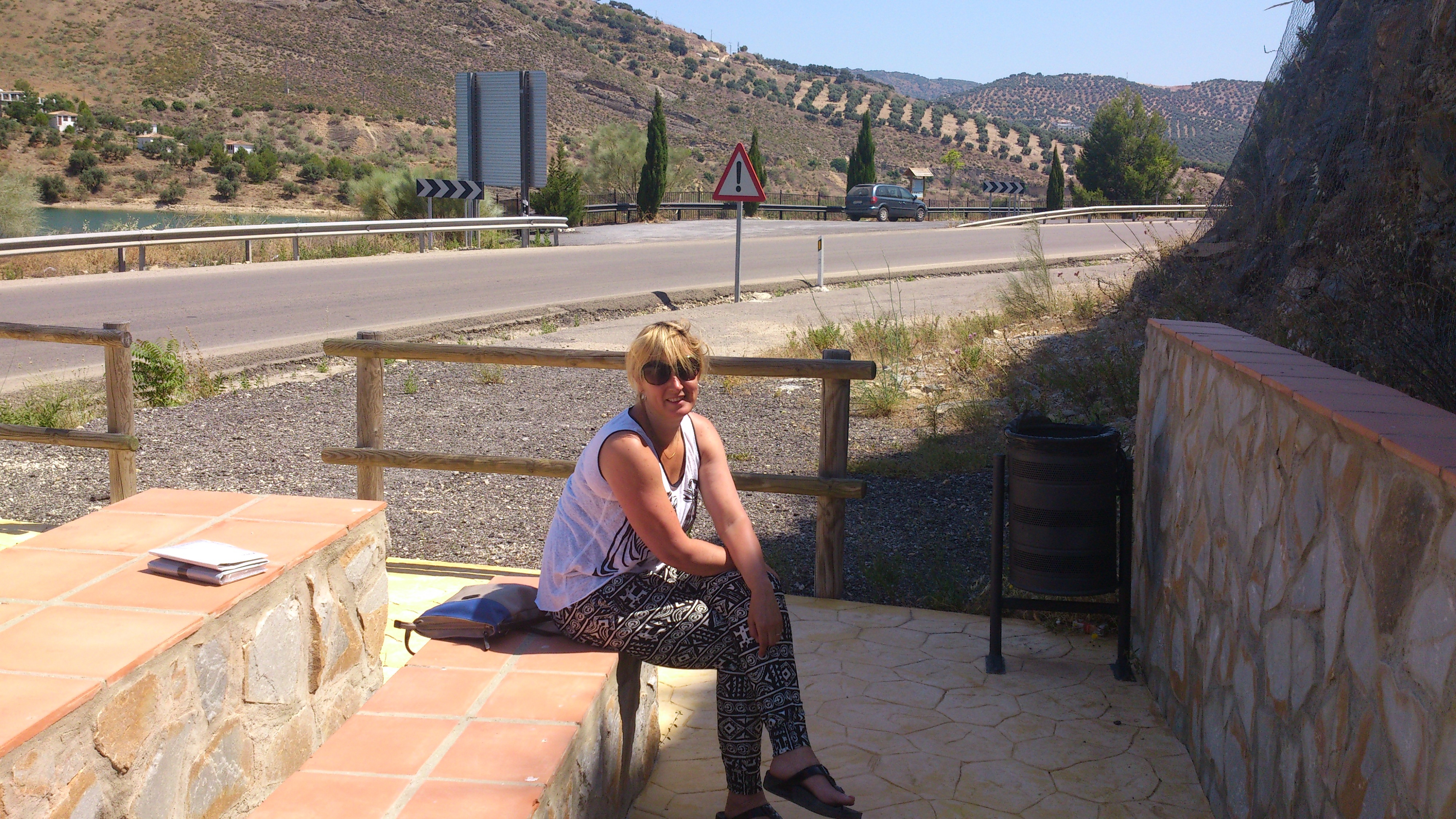 Echter toen we bij de tweede brug in Iznajar aankwamen bleek deze voor 4 dagen afgesloten te zijn. Geen idee hoe we moesten rijden, er stond wel een bordje met omleiding maar bij een spitsing stond er niks meer, dan maar gokken. Na een tijdje over kronkelweggetjes gereden te zijn toch maar de tomtom aangedaan en deze stuurde ons terug. Zullen we dan toch de verkeerde afslag gepakt hebben? Echter bij de spitsing aangekomen wilde hij ons weer naar de brug sturen, dat moest ook maar niet, dan maar de andere afslag. Maar deze weg ging over van asfalt naar beton naar een zandweg.