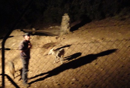 De wolven leven daar in een semi-natuurlijke omgeving, je kan de wolf en diner tour doen zoals Lesley en Rinus vorig jaar gedaan hebben, heel bijzonder om de wolven s’avonds mee te maken.DSC02071 De Duitse eigenaar vertelt alles over de manier waarop de wolven communiceren, spelen, jagen en eten, hij zet zelf een dierlijk gejank in  waarop de roedels reageren en het resultaat is een overweldigend gehuil dat door de vallei schalt.