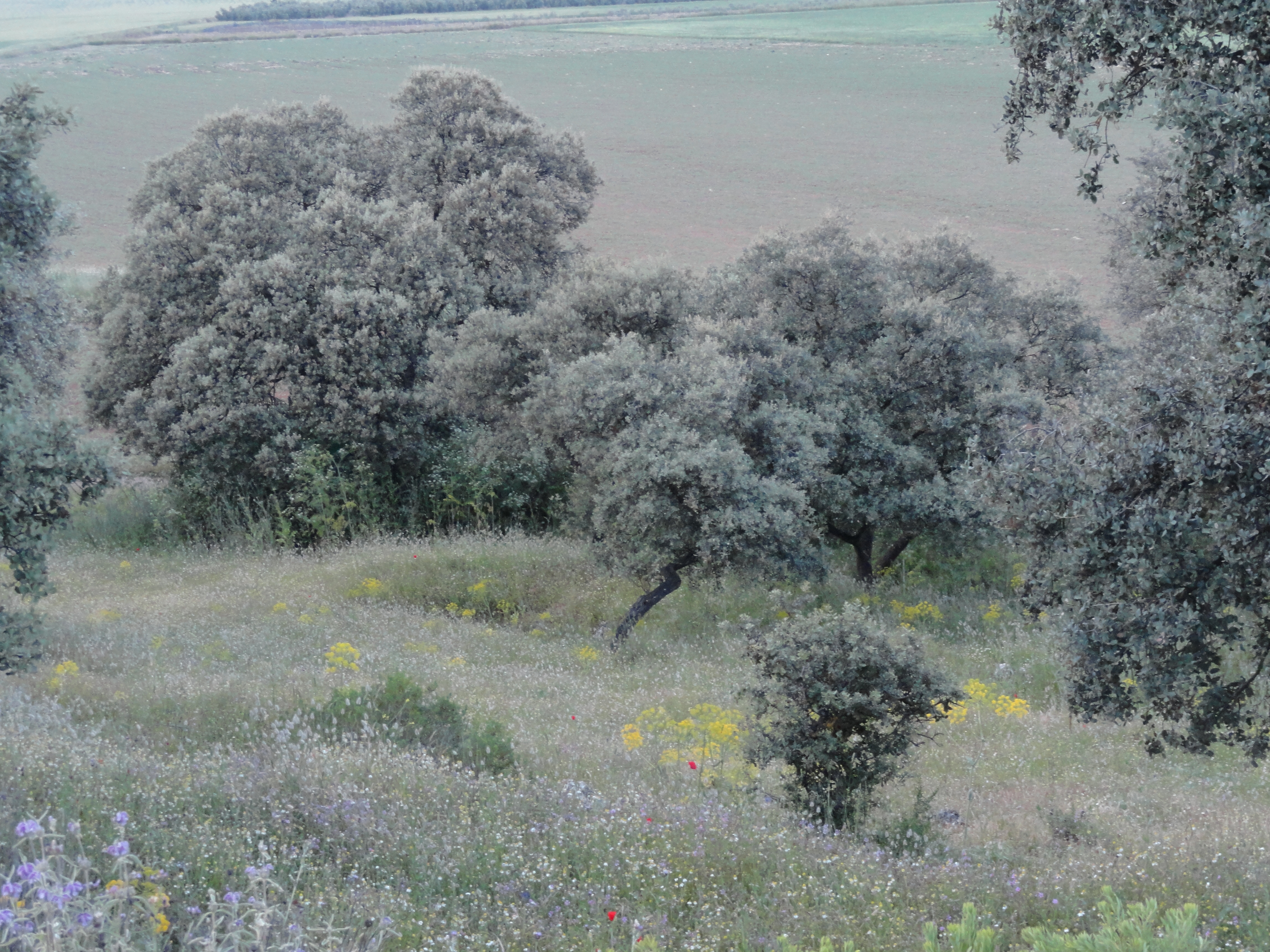 Verkoeling vind je in de zomer onder de olijfbomen, sinaasappelbomen maar ook onder de beschermde boom de steeneik. Wij wonen in een gebied waar deze bomen veel voorkomen. De steeneik heeft een dichte, brede, koepelvormige kroon. De bladeren zijn lichtgroen/grijsachtig, dik, leerachtig en lijken wel wat op bladen van de hulst. Er moet zelfs een vergunning aan gevraagd worden om ze te snoeien heb ik me laten vertellen. Ik vind het prachtige bomen en ben blij dat we er vele in onze tuin hebben staan.