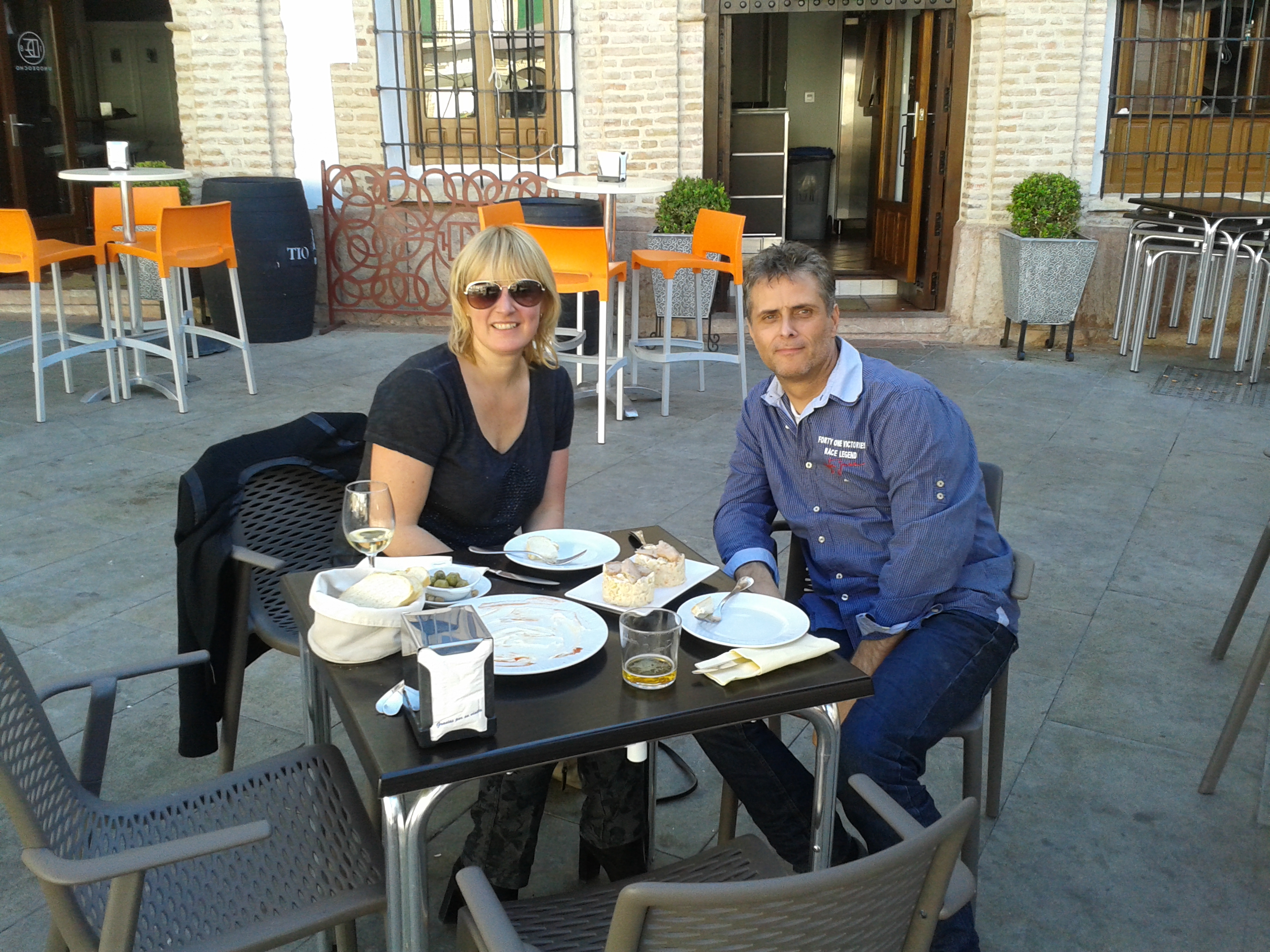Net aangekomen maar direct weer op pad om boodschappen te doen, maar eerst even wat eten. Op het pleintje in Archidona scheen de zon uitbundig. Wat zalig gewoon begin november zonder jas buiten op het terras zitten. We plofde eerst neer bij Arxiduna voor een drankje en een tapas van het huis, daarna aan de overkant bij een restaurantje die plekjes had in de schaduw, kan je voorstellen het was gewoon te warm in de zon.