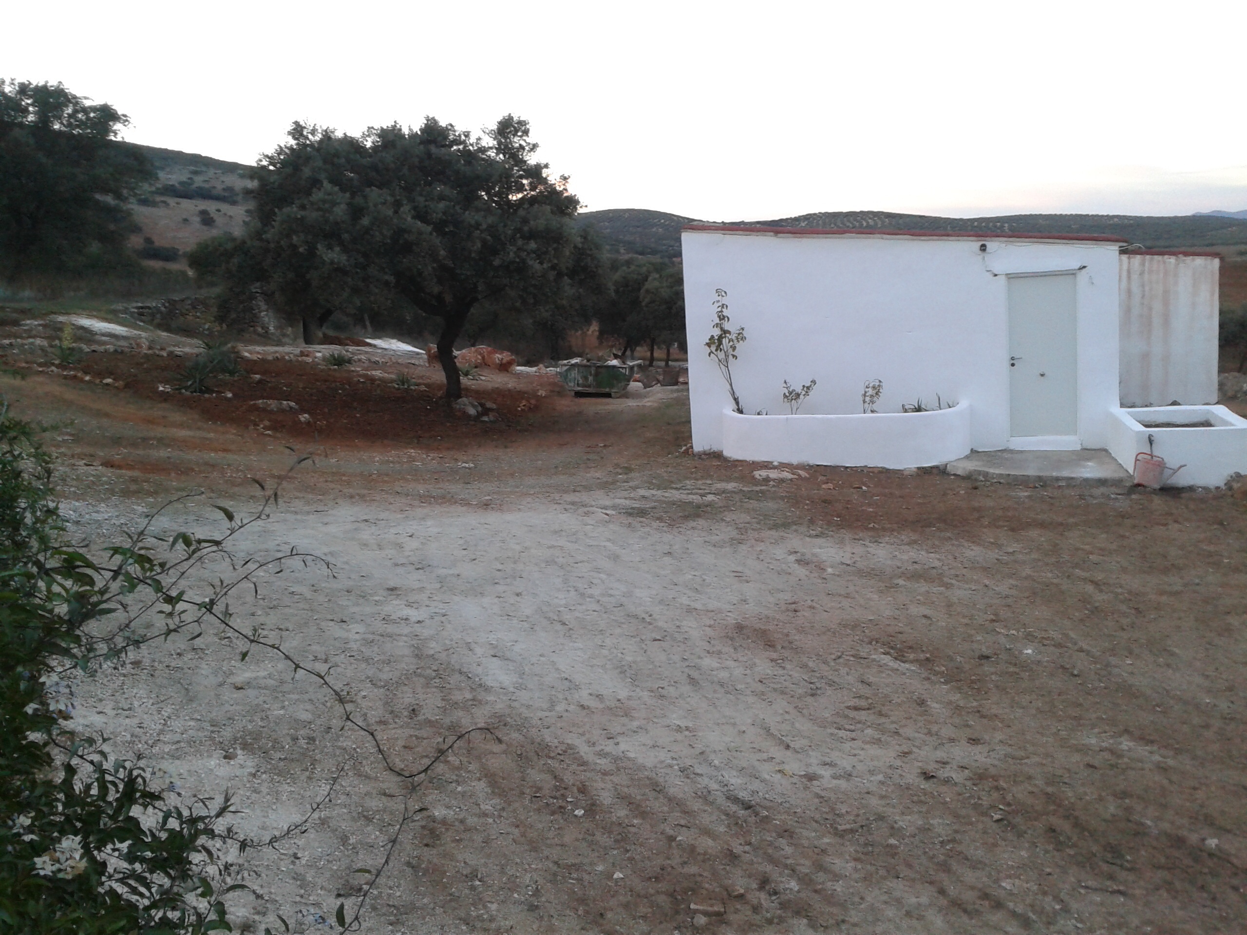 Voor het huis is het een stuk vlakker, wat zal dat mooi staan als daar grind op komt te liggen, ik zag het al helemaal voor me. De zijkant van de studio en de bijbehorende plantenbakken heb ik maar alvast wit geverfd en je ziet het op knappen.