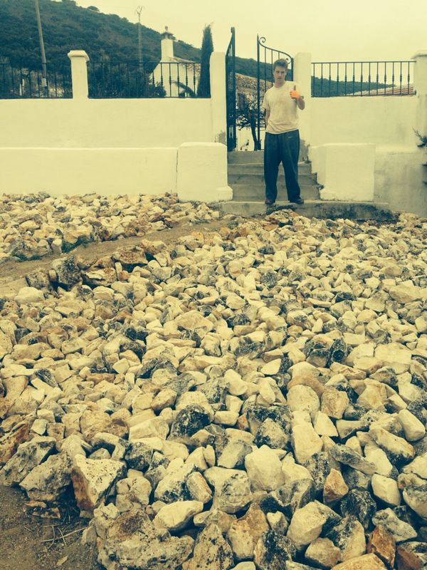Jairo heeft toch aardig zijn best gedaan, hij is flink aan het sjouwen geweest met de keitjes.