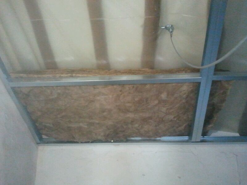 Het was erg vochtig daarboven en daar moest iets aangedaan worden, de balken werden afgedekt met plastic, toen werd er een ijzerenframe gemaakt en daar kwamen blokken schaapswol tussen en met platen werd alles afgedekt.