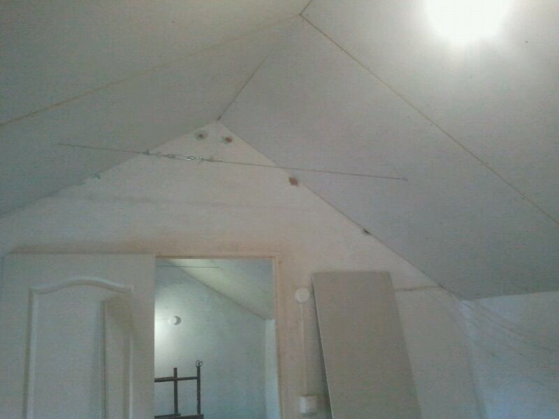 Spandraden werden er gespannen om de metalen veel te lage steunstangen te vervangen, die nodig zijn om de muren bijeen te houden. Nu is de boel helemaal goed geïsoleerd en ziet het er netjes uit. Er moet nog wel een verfje op maar dat gaat mijn vader doen in april.