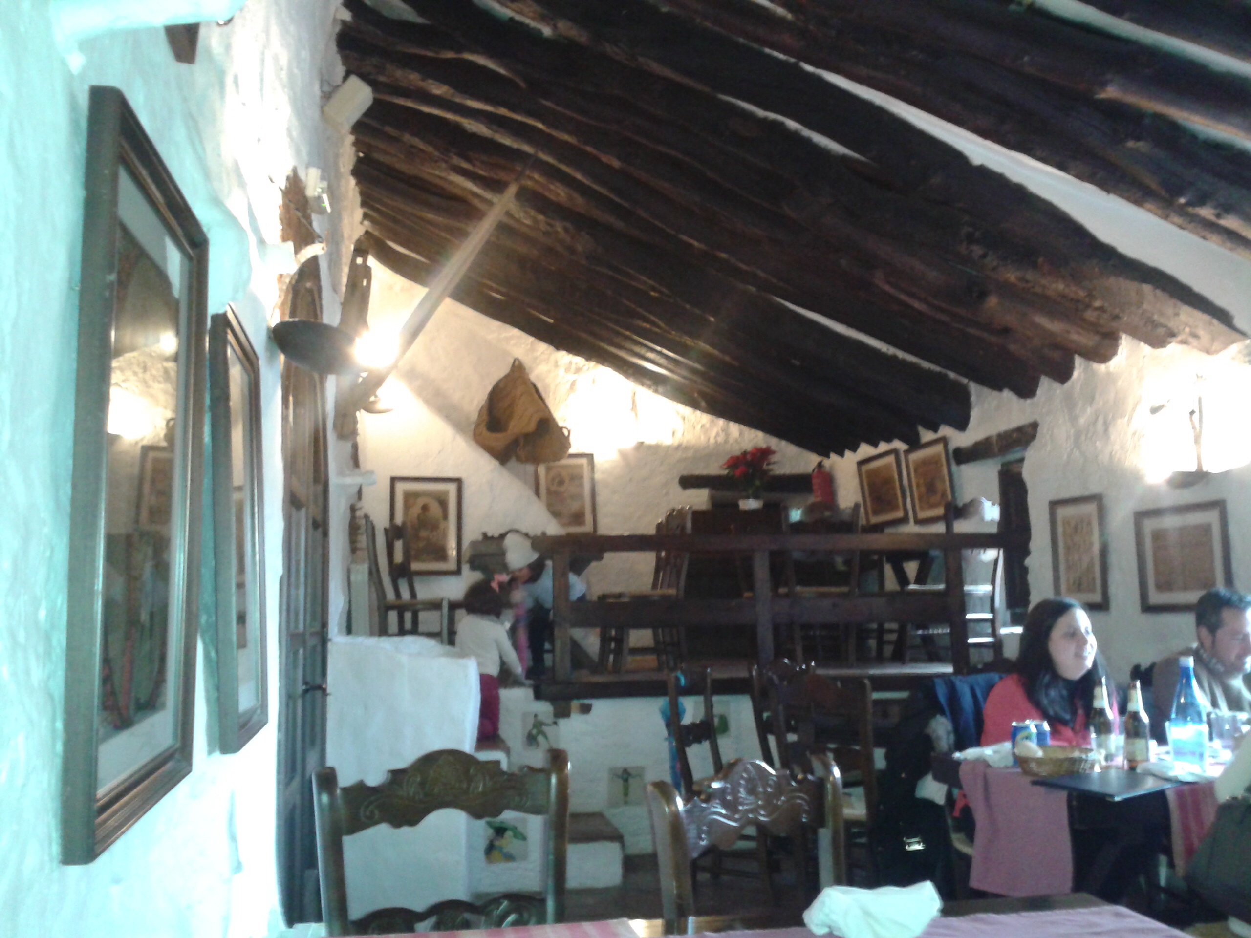 Helaas regende het nog steeds dus geen wandeling buiten, dan maar een restaurantje induiken. Venta Alfarnate Antiqua was een groot succes. Dit is echt het mooiste echt Spaanse restaurantje wat ik tot nu toe ontdekt hebt. Het was super druk met alleen maar Spanjaarden en dan weet je ook dat het goed is. Wel heel grappig want dit restaurant ligt in de middle of nowhere het is prachtig historisch met mooie houten balken, leuke doorgangetjes en antieke materialen aan de wanden. Het eten was prima en de diverse haardjes zorgden voor veel sfeer. Weer een leuk plekje wat we bijschrijven in ons boekje.