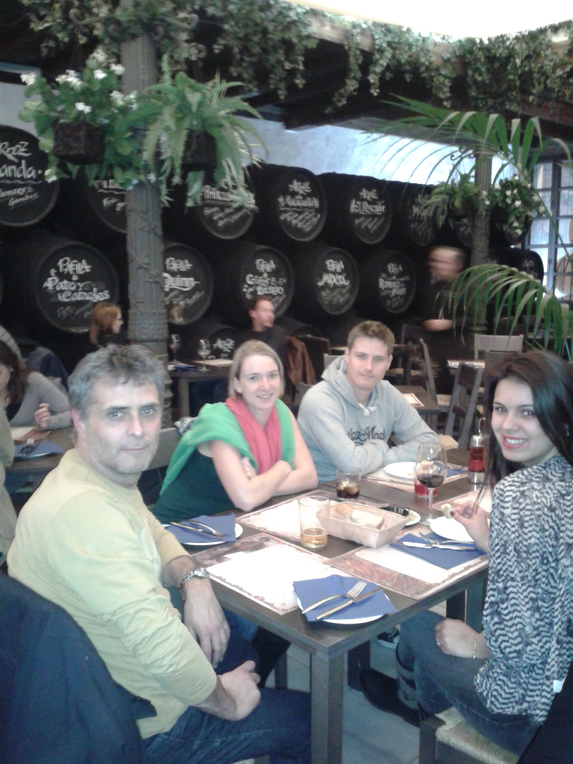 Leuk om die blijde koppies weer te zien, ze hadden nog niet gegeten en het leek ons leuk om dat in Malaga te doen. Na eerst een klein stukje door de stad gelopen te zijn besloten we bij twee typisch Spaanse populaire tentjes te gaan eten. Eerst bij El Patio en daarna bij El Pimpi. Onwijs gezellig, Jairo zijn vriendin Daisy was voor het eerst mee en zat ook zichtbaar te genieten.